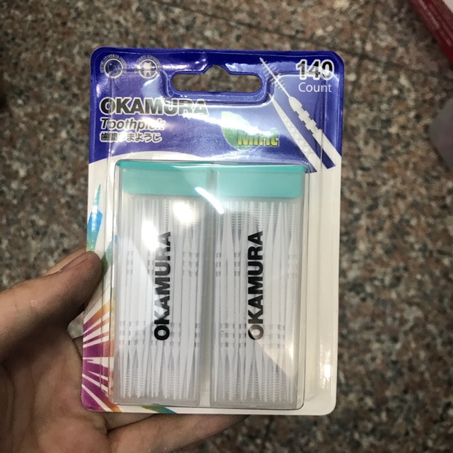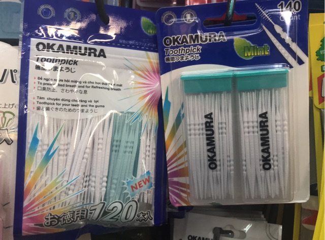 Tăm Nhựa Okamura 2 Đầu Mùi Bạc Hà 120 & 140 Cái - Tăm Nhựa Mềm - Tăm Xỉa Nha Khoa