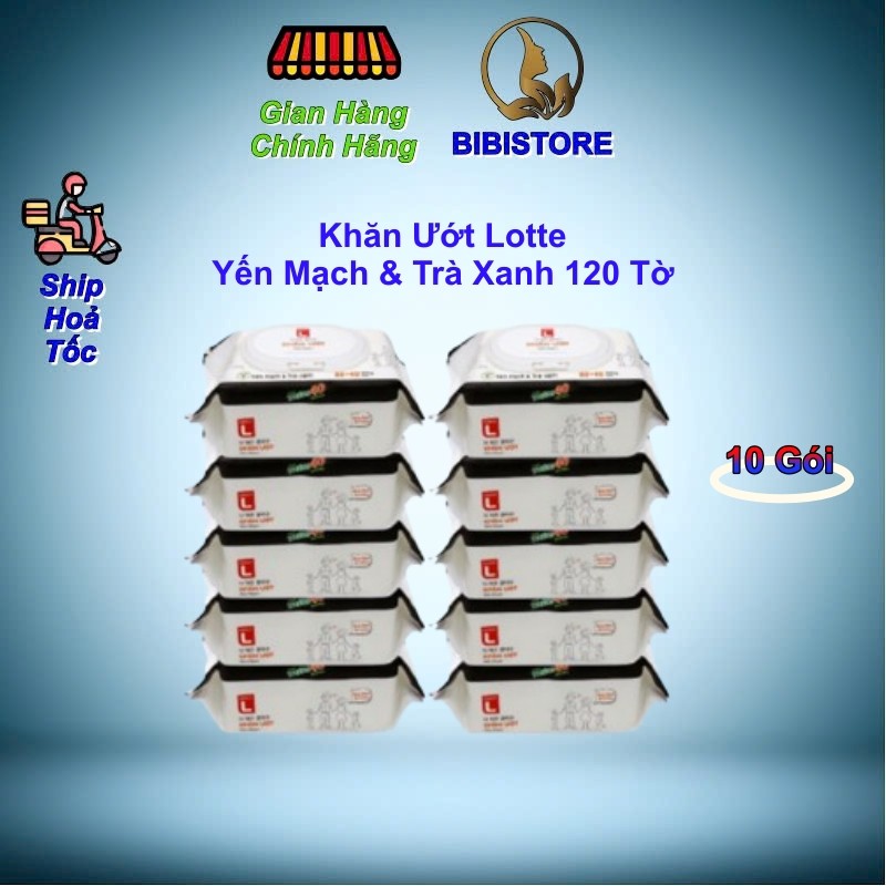 [Combo 10 Gói] Khăn Ướt LOTTE Choice L Hương Yến Mạch Trà Xanh Gói 120 Miếng