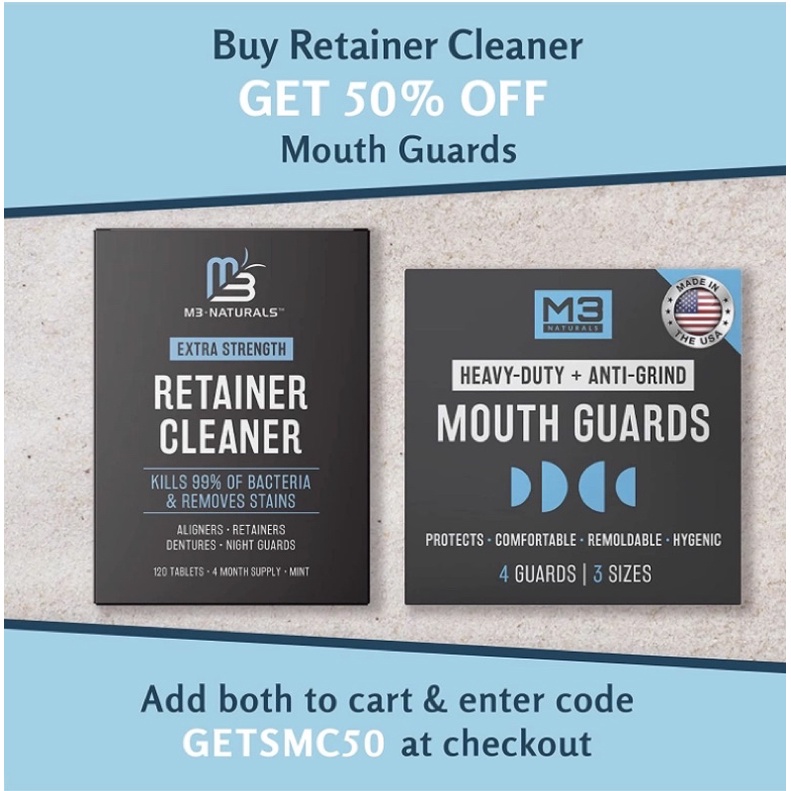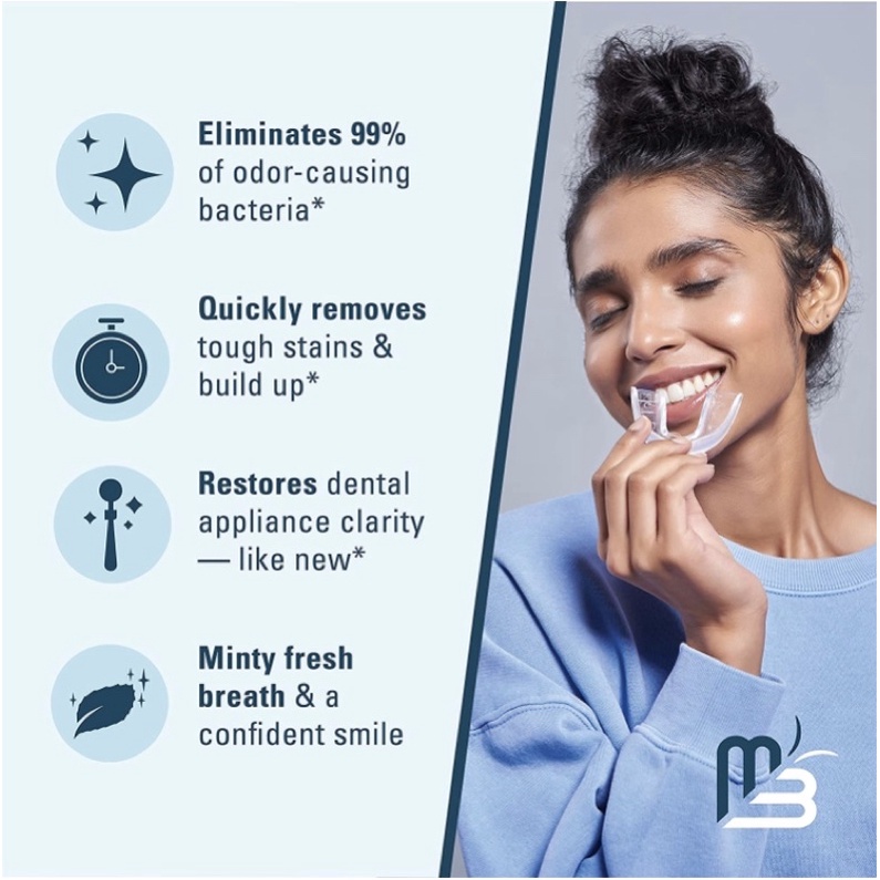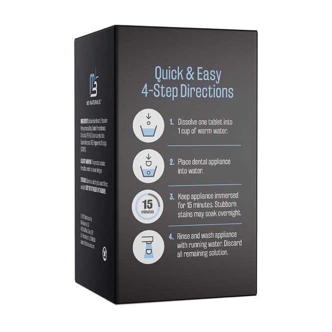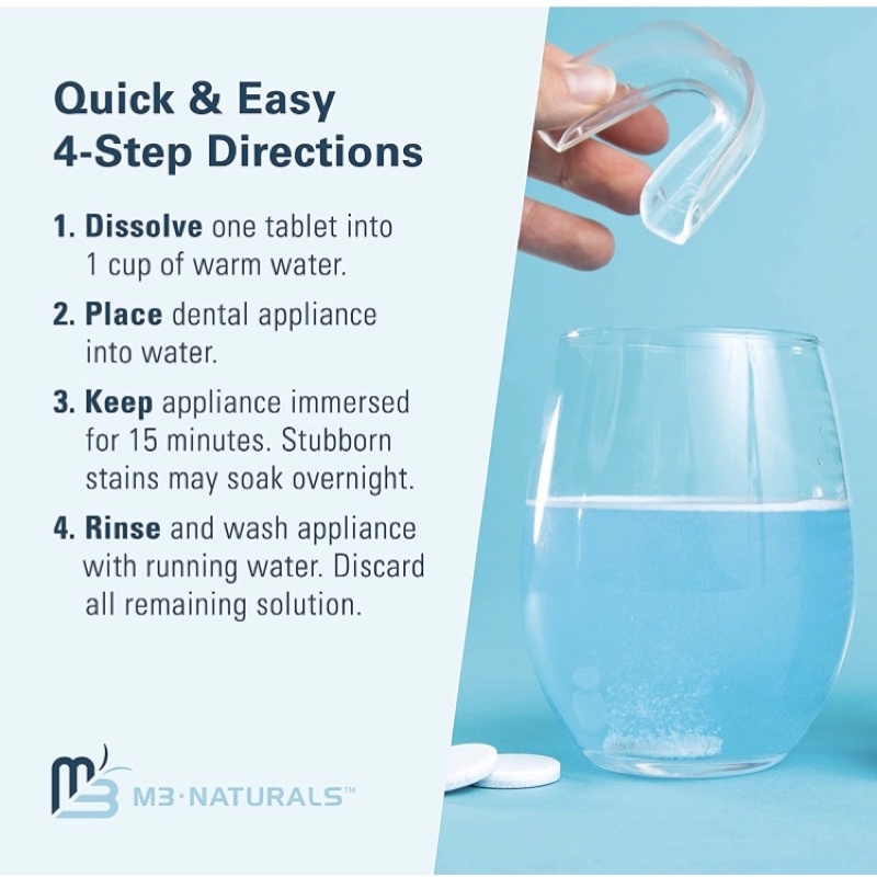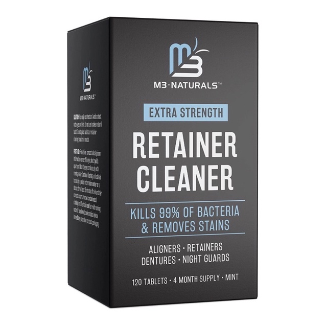 Viên ngâm làm sạch máng chỉnh nha, hàm giả M3 Naturals Retainer and Denture Cleaner 120 viên USA