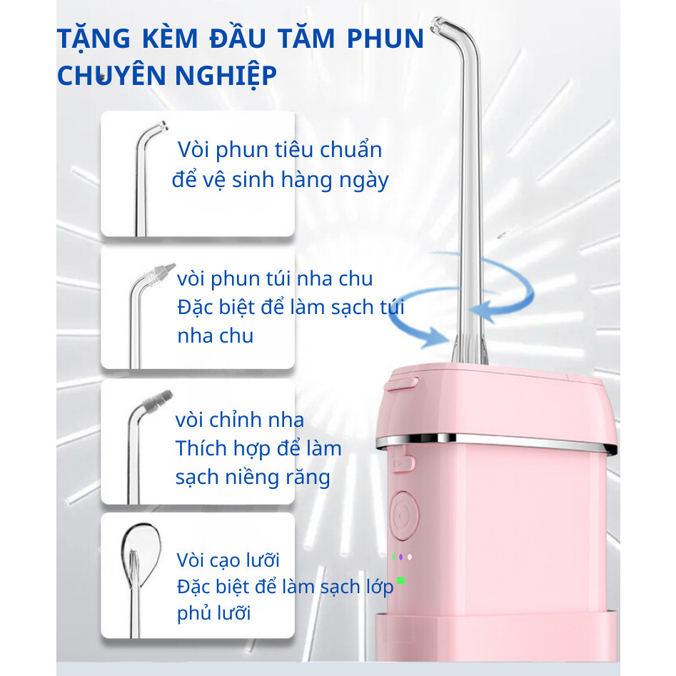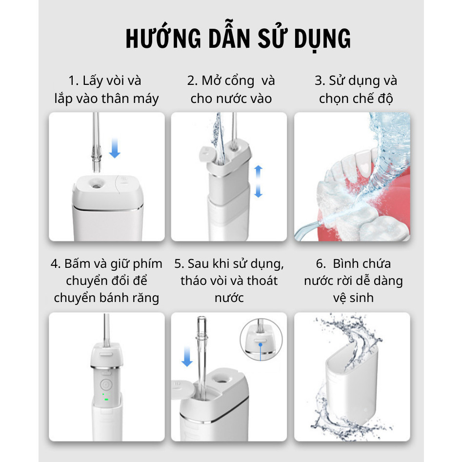 Máy tăm nước gấp gọn KAW dung tích 330ml 3 chế độ làm sạch răng bảo hành chính hãng