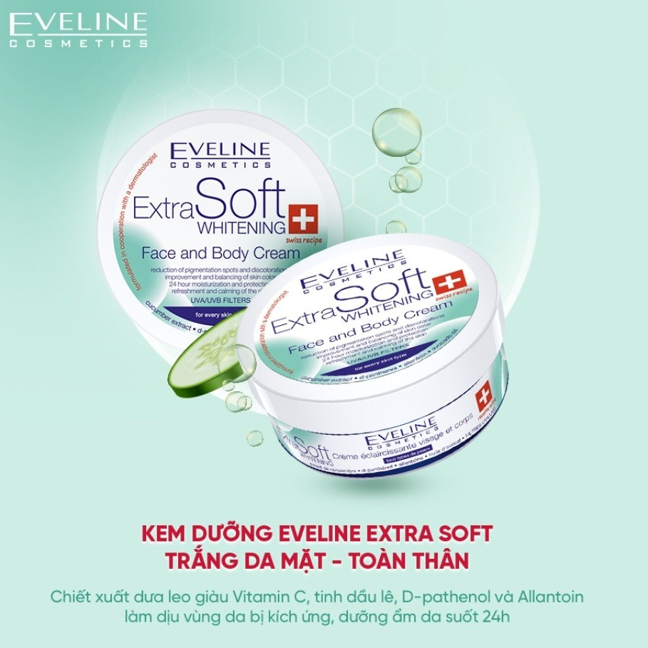 Kem dưỡng trắng da mặt toàn thân Eveline Cosmetics Extra Soft dưỡng ẩm cho làn da mịn màng 175ml