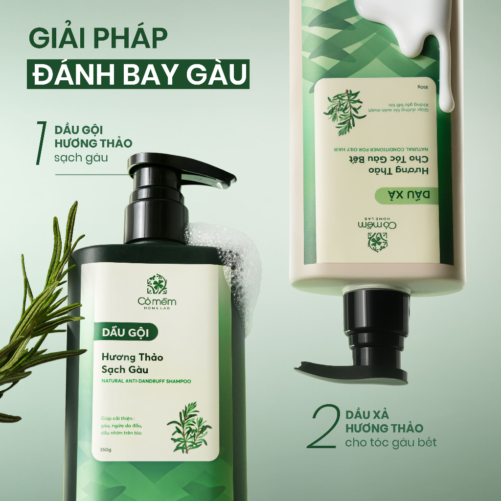 Combo Gội Xả Tóc Hương Thảo Sạch Gàu Giảm Gàu Ngứa Cho Mái Tóc Suôn Mượt Bồng Bềnh Cỏ Mềm