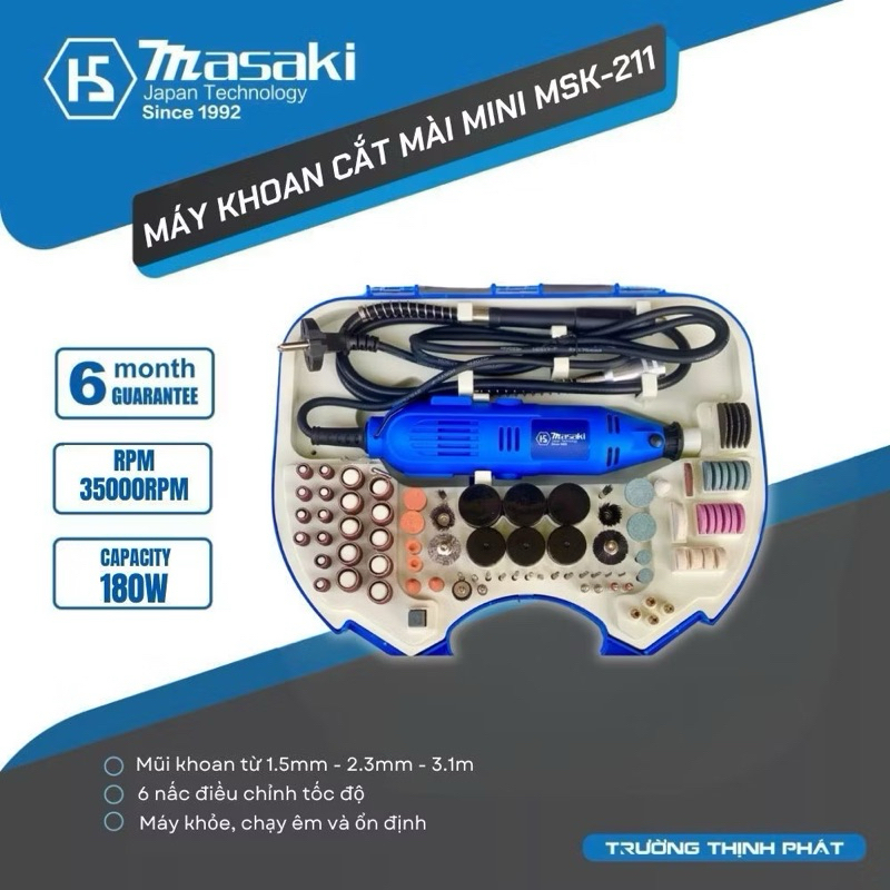 [CHÍNH HÃNG] Máy Khoan, Mài, Cắt mini Đa Năng 100 chi tiết MASAKI - MSK 211, Công suất 180W, 6 Tốc Độ + Bảo Hành 6 Tháng