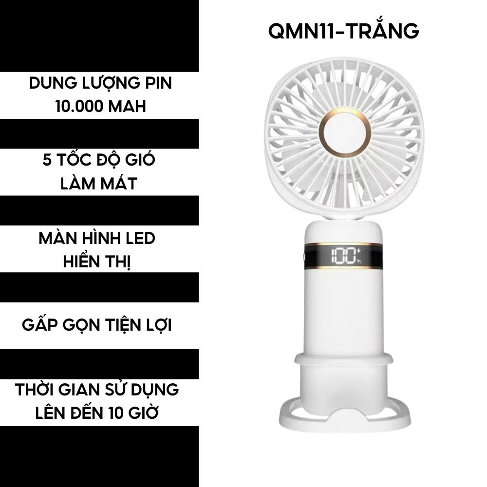 Quạt Mini Cầm Tay Tích Điện Gấp Gọn DELAX 5 Tốc Độ Gió Xoay Linh Hoạt 90 Độ, Có Dây Đeo Cổ, Pin Lớn 10.000mAh