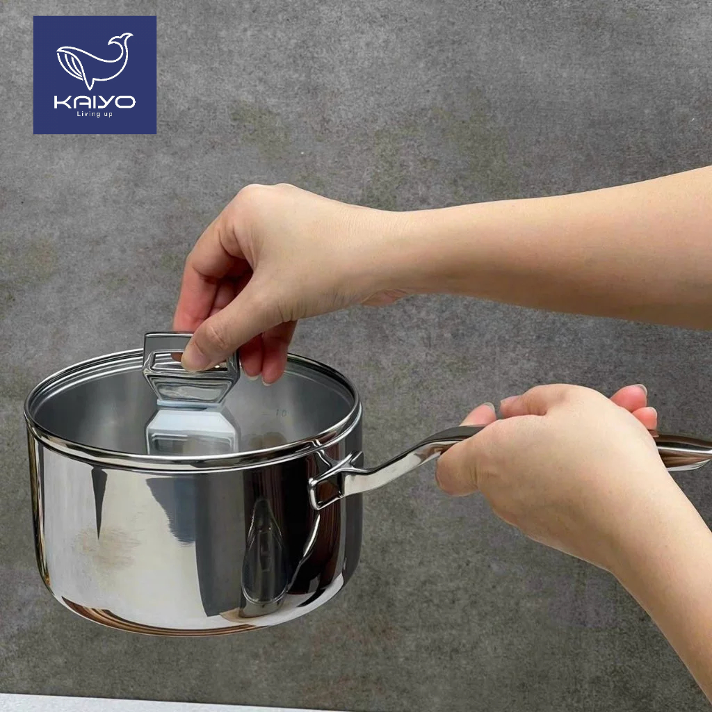 Quánh Đúc Inox 3 Lớp Đáy Liền Tri-Ply Kaiyo 16cm |18cm Đáy Từ Kèm Vung - LARVA STORE