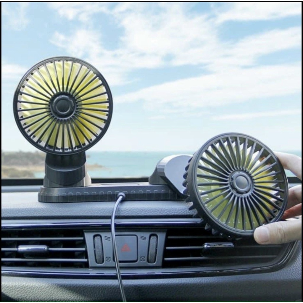 Quạt đôi mini 12v cắm tẩu usb trên ô tô - quạt siêu mát cực thơm - văn phòng máy tính cắm được tiện ích