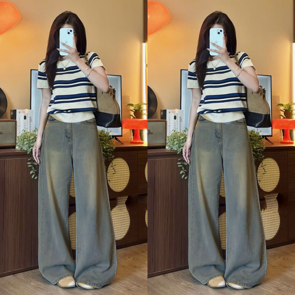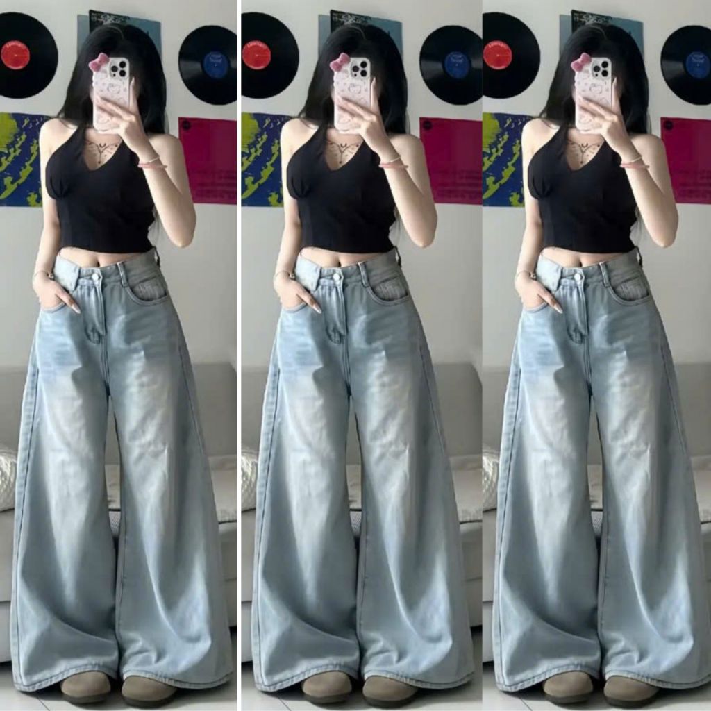Quần Jean Trắng Nữ MIAA ống Rộng 33cm DÀI 98-104cm cạp cao chất Jean mềm dày dặn đầy đủ size S-XL