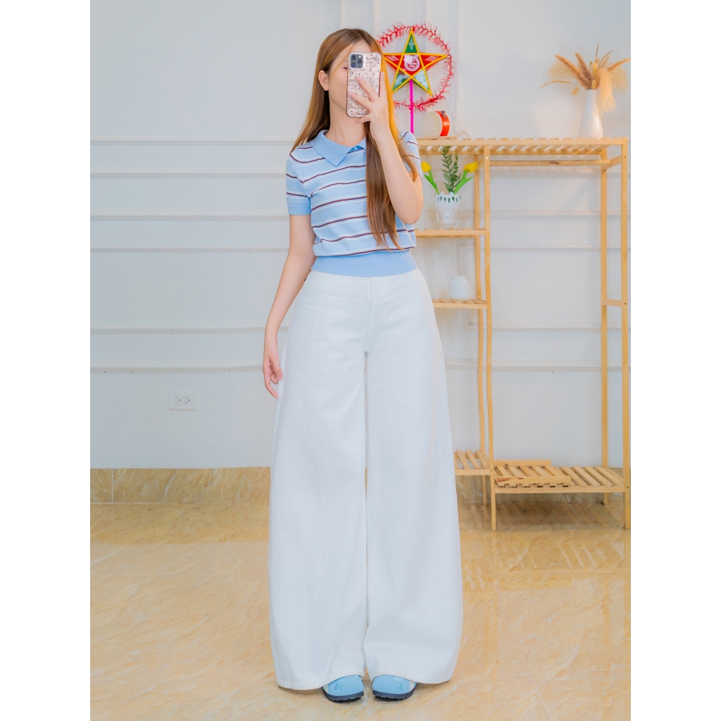 Quần Jean Trắng Thêu Suông Ống Rộng KIENPKT Lưng Cao, Quần Jean suông Thêu Ôm Eo Form Đứng .