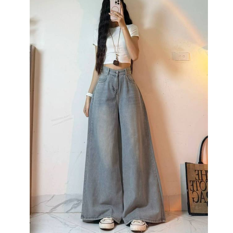 Quần Jeans Ống Suông Rộng Đứng MIAA Cạp Cao Màu RETRO , Quần Bò Ống Rộng Chất Jean Mềm Form Unisex_VER1