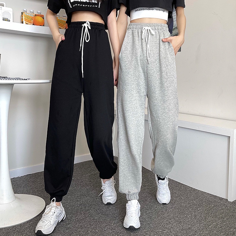 Quần Jogger Nữ Trơn Bo Gấu 3 Màu BOM HOUSE Ullzang Unisex Nam Nữ
