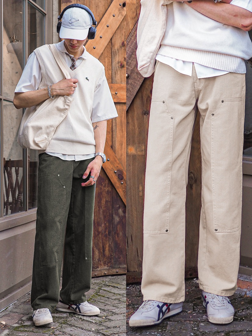 Quần Kaki Ống Suông Unisex Double Knee Reetro Form Đẹp Vải Dày Dặn