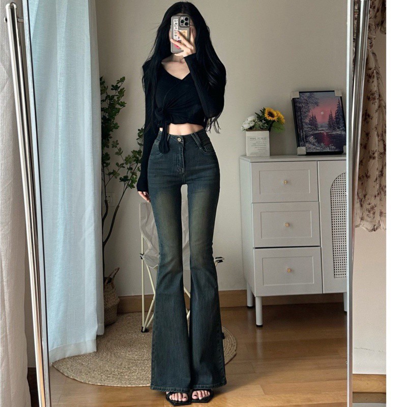 Quần Loe Nữ Lưng Cao KIENPKT Vải Jean Bò Màu Bụi Xanh Nhạt Phủ Dơ , Quần Bò Loe Cạp Cao Co Giãn 4 chiều siêu tôn dáng .