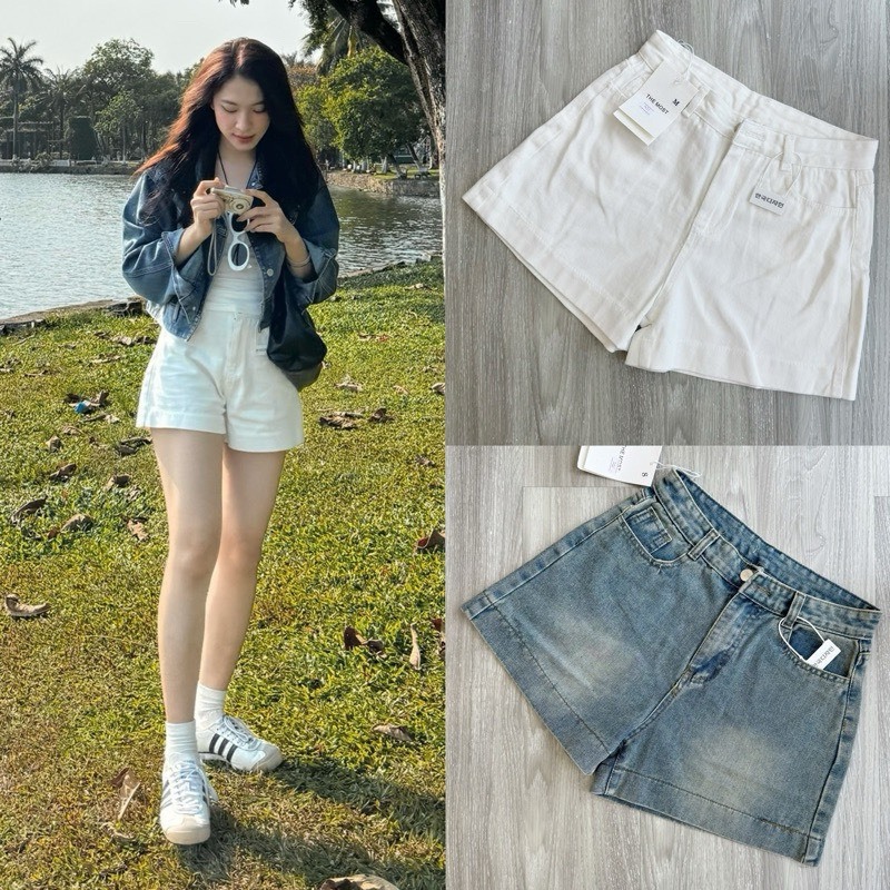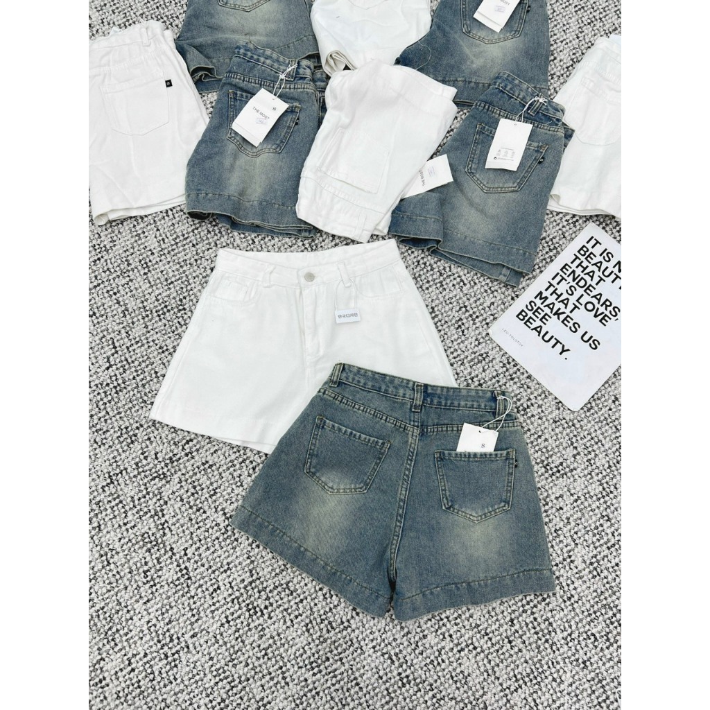 Quần Short Jean Retrostyle Nữ Lưng Cao Gấu To Nhiều Màu