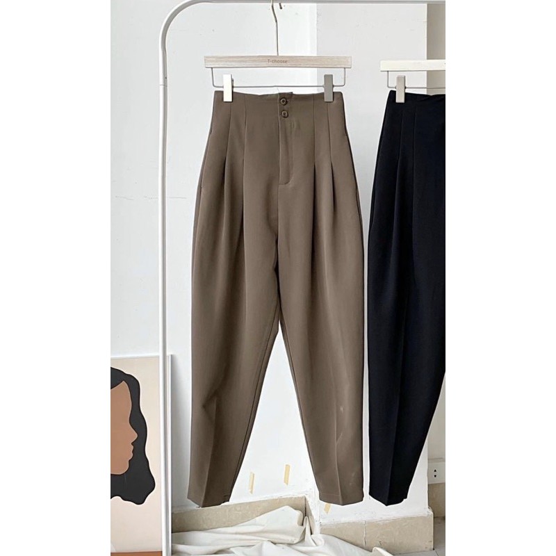 [HOẢ TỐC] Quần Tây Baggy 2nút lưng cao xếp ly (Chất tuyết mưa cực mịn đẹp, chuẩn form HÌNH THẬT 100%) 4 màu BASIC [130]