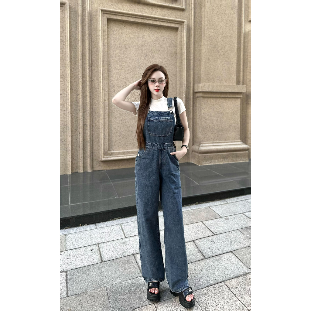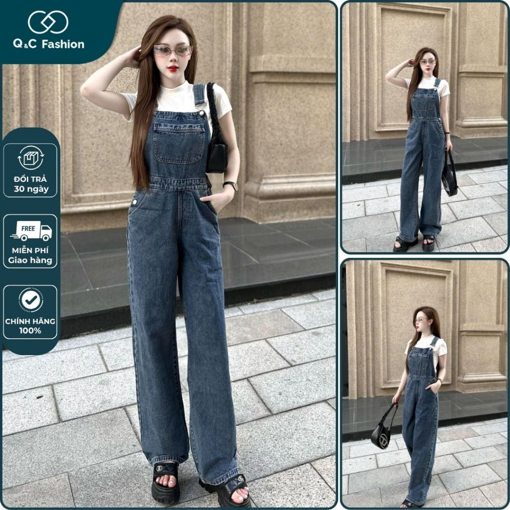 Quần Yếm Nữ jeans Dài Ống Rộng Cài Cúc Sườn Dáng V Dây Rút Sau – Yếm Jean Nữ Ôm Eo Tôn Dáng – Q&C Fashion jeans Cao Cấp