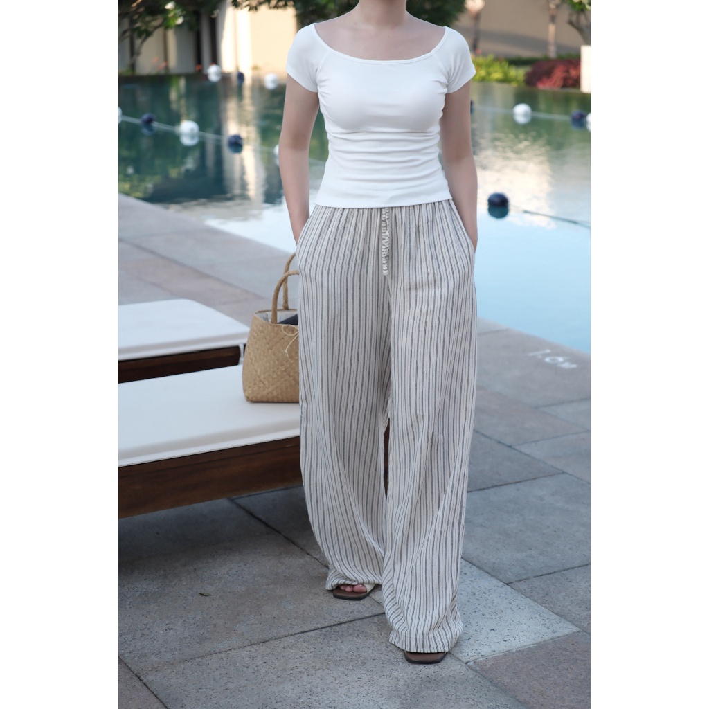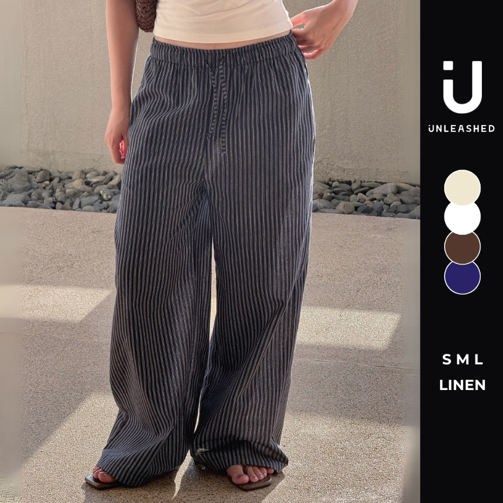 Quần suông linen cạp chun dây rút thoải mái hàng kiện Unleashedvn STRIPED SANDY Summer Pants