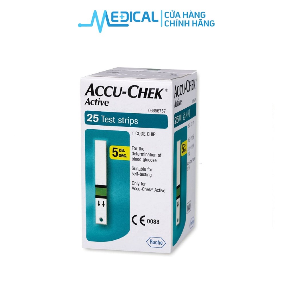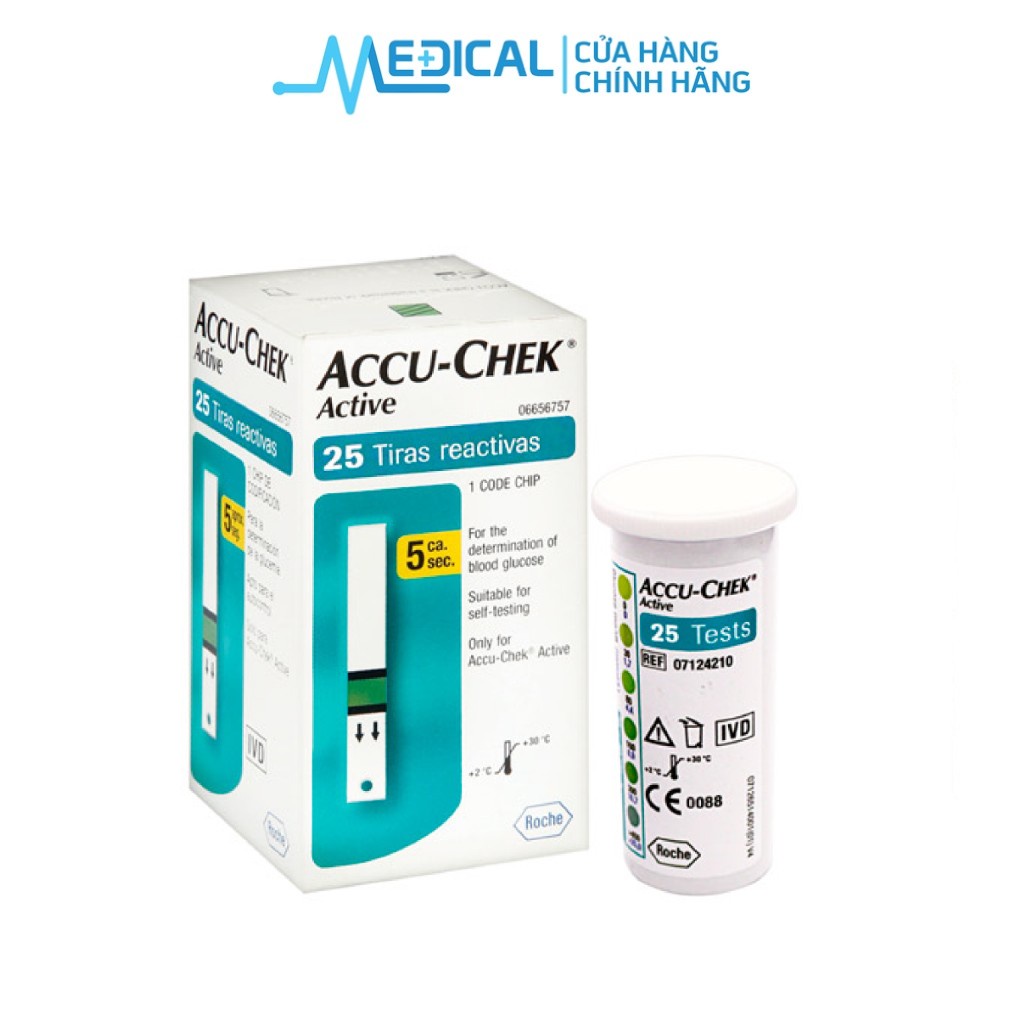 Que thử đường huyết Accu-Chek Active dùng cho máy đường Active chính hãng " HỘP 25 TEST "- MEDICAL