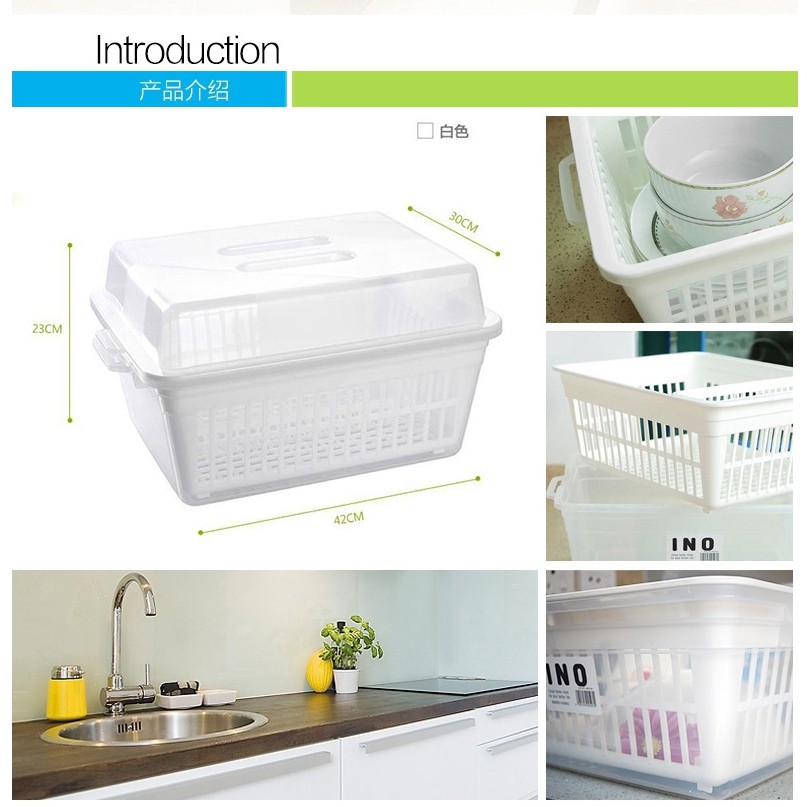 Rổ úp bát đĩa có nắp cao cấp Inomata nội địa Nhật Bản