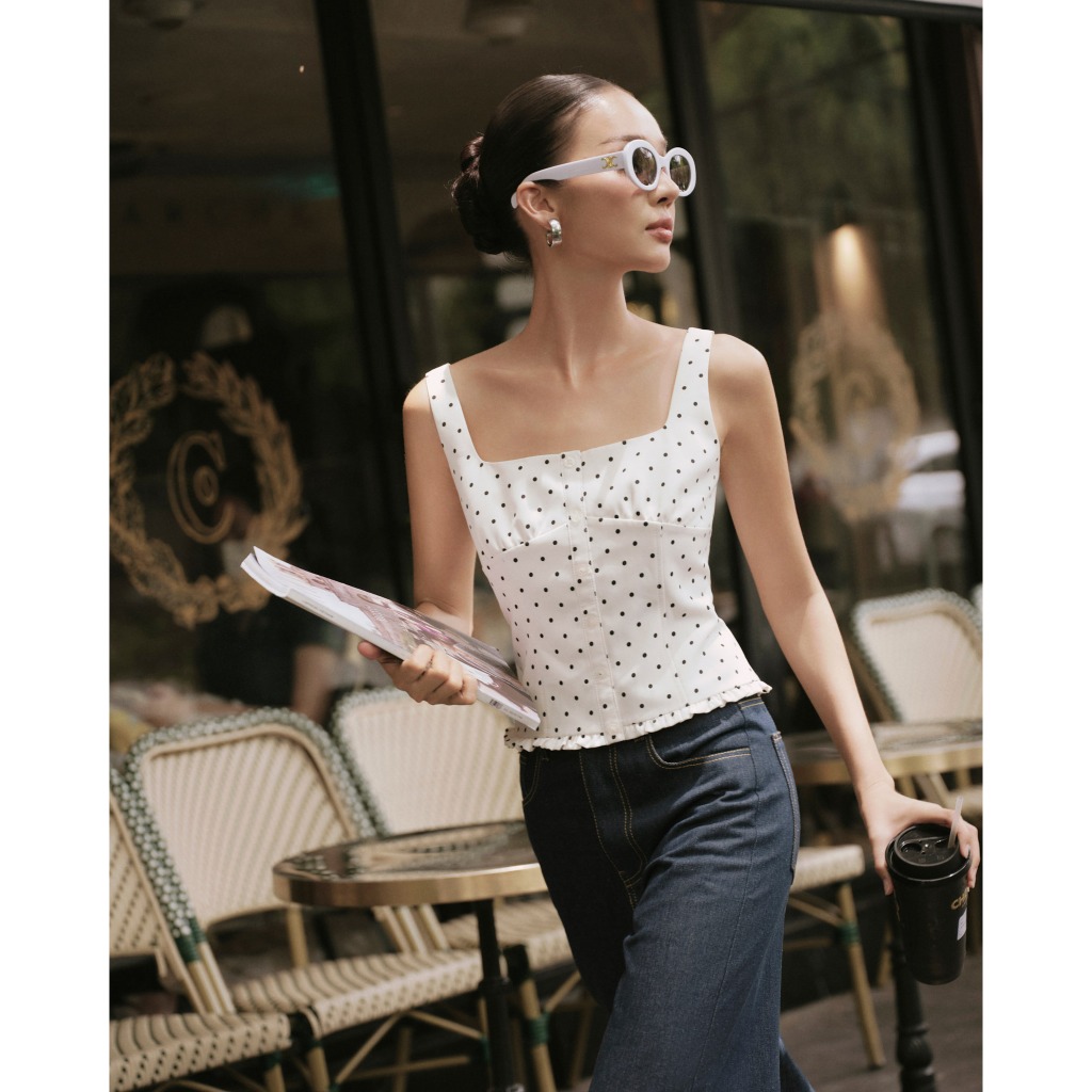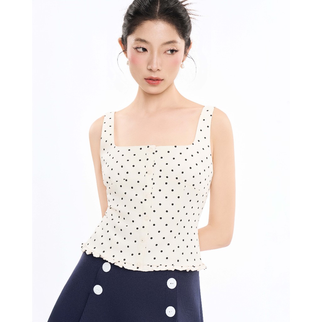 RECHIC Áo kiểu hai dây Mignon cổ vuông hoạ tiết chấm bi nữ tính