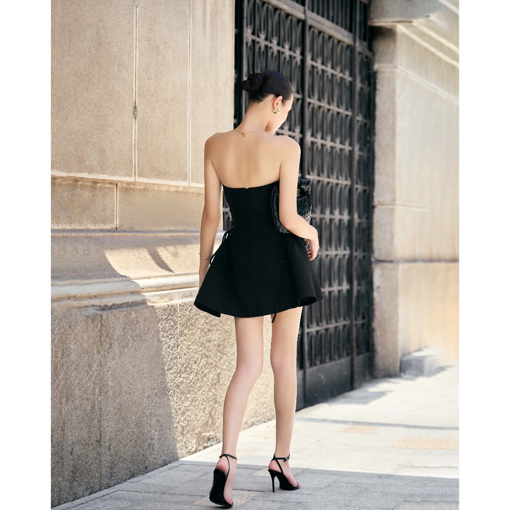 RECHIC Đầm ngắn cúp ngực Fanette phối nơ chiết eo sang trọng