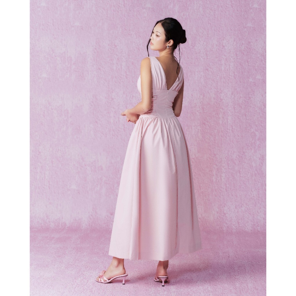 RECHIC Đầm dài Kyomi cổ V sát nách dáng xòe chiết eo sang trọng