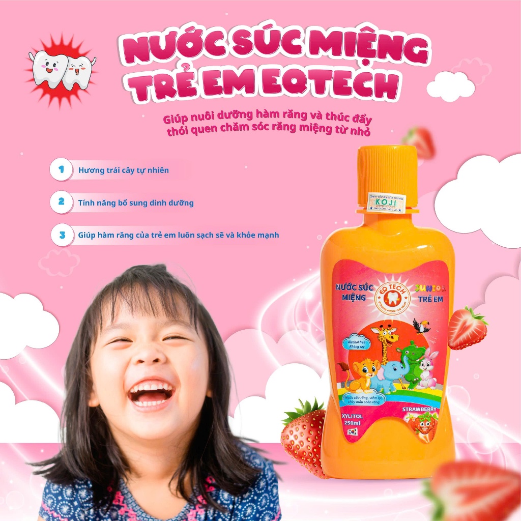 Nước súc miệng cho bé EQTECH thành phần từ hữu cơ tự nhiên giúp trẻ ngừa sâu răng, viêm lợi và chảy máu chân răng 250ml