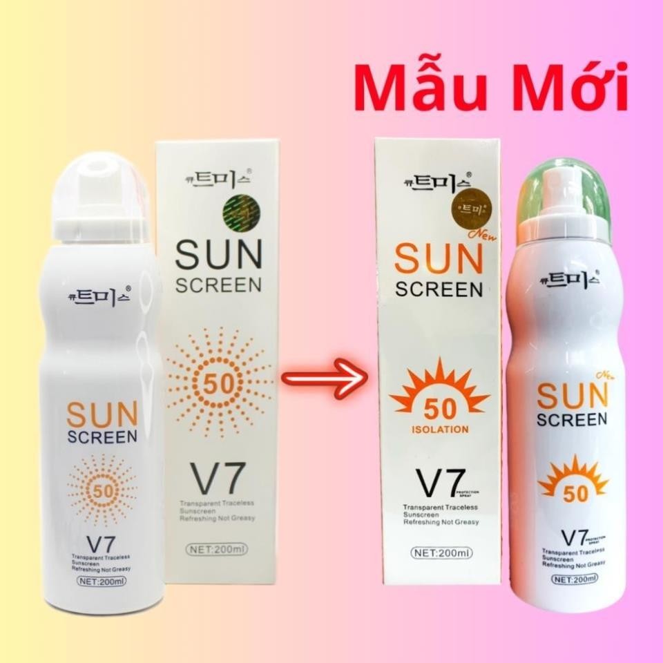 Xịt chống nắng trắng da Sun Screen V7 nâng tone chống nước không bết dính kem chống nắng mặt body SPF50+ 200ml