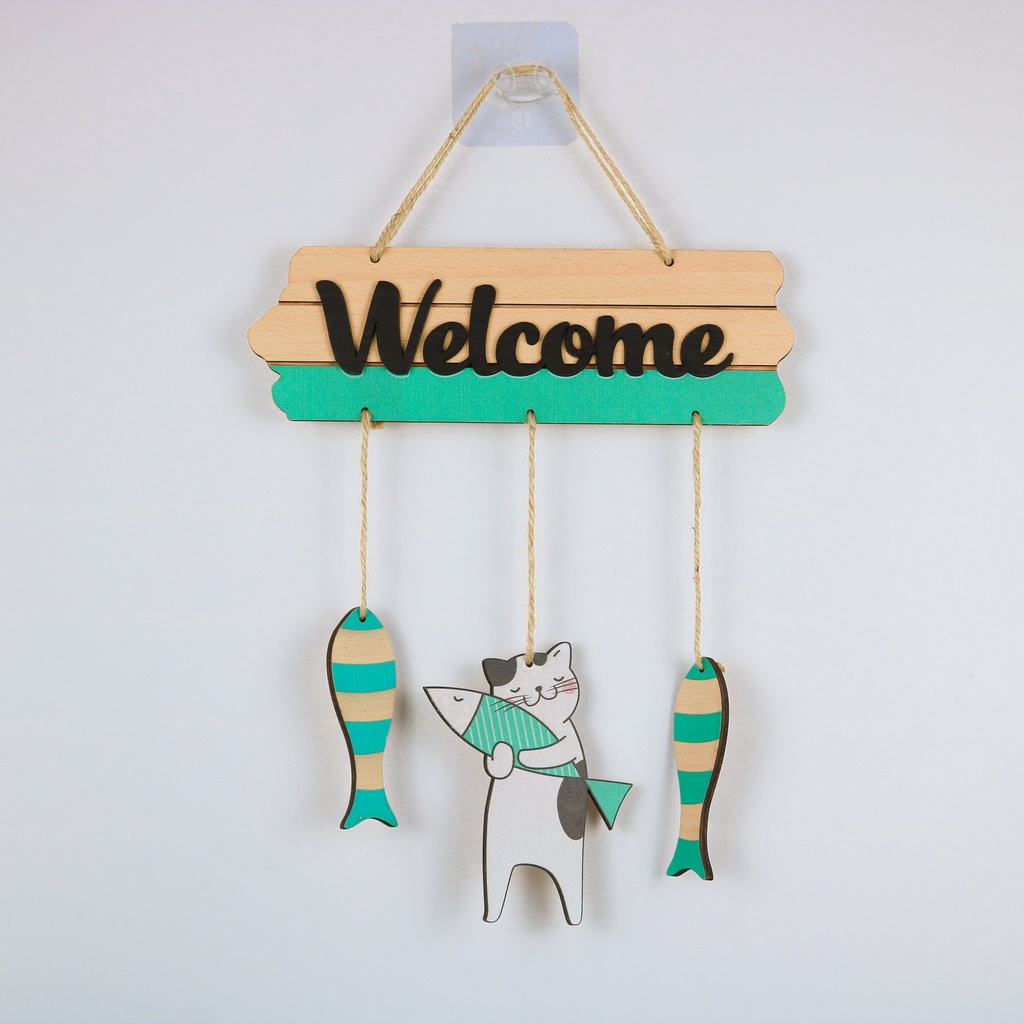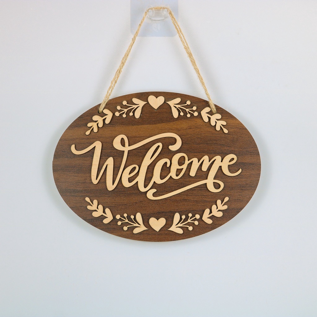 Bảng Gỗ Chữ Welcome Treo Cửa Trang Trí Cửa Hàng, Quán Cà Phê 3D Dễ Thương