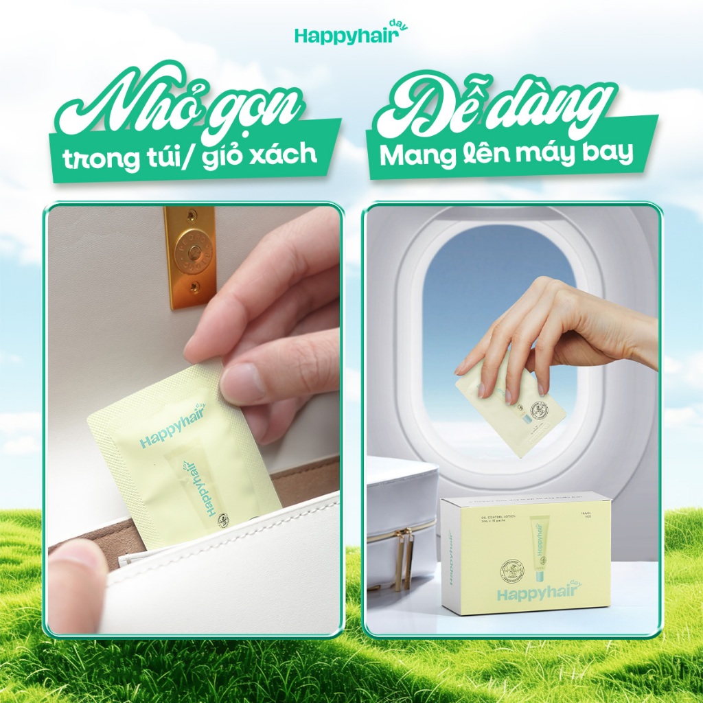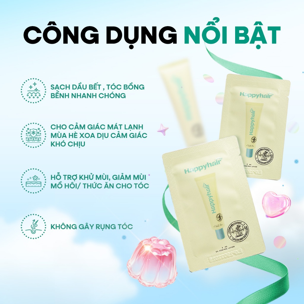 Kit du lịch Happyhair Day Lotion kiềm dầu giúp tóc bồng bềnh, hết dầu bết nhanh chóng (1hộp 15túi 3ml)