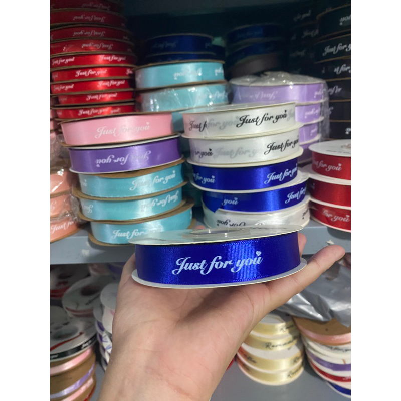 Cuộn RUY BĂNG Lụa Chữ "JUST FOR YOU" dài 45m x 2cm làm nơ, bó hoa, trang trí gói quà tặng siêu sang