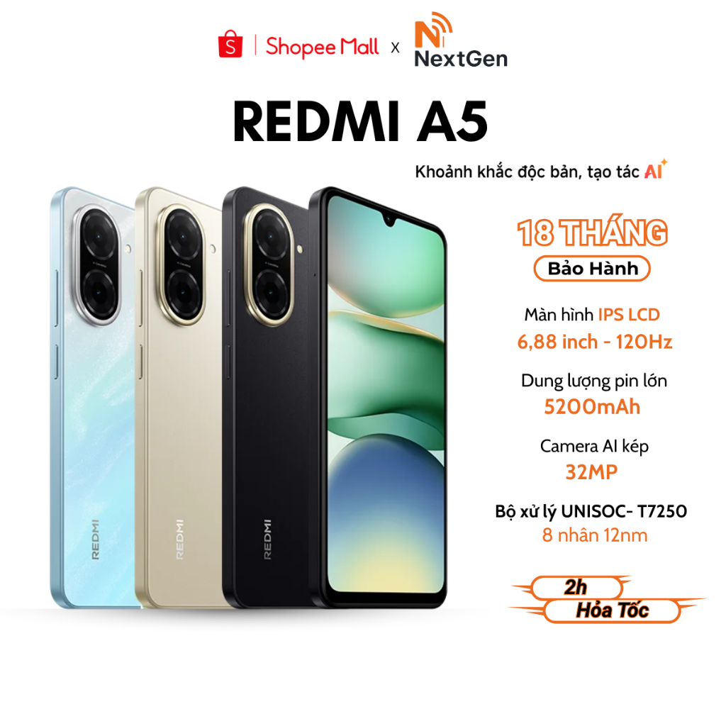 Điện Thoại Thông Minh Xiaomi Redmi A5 3/64GB - 4/128GB - Bảo hành chính hãng 18 Tháng - (Nguyên Seal)