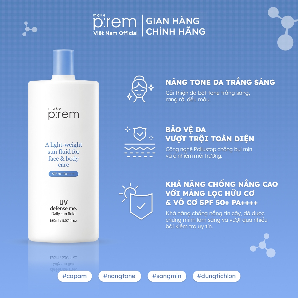 Kem Chống Nắng Make P:rem UV defense me. Daily sun fluid 150ml