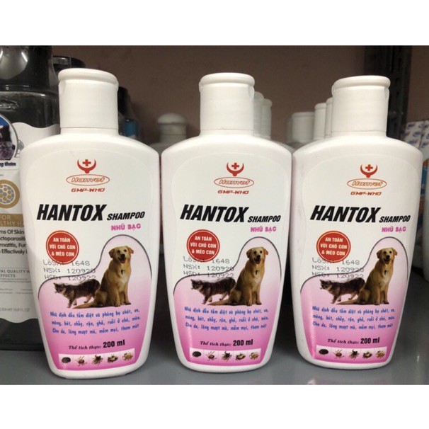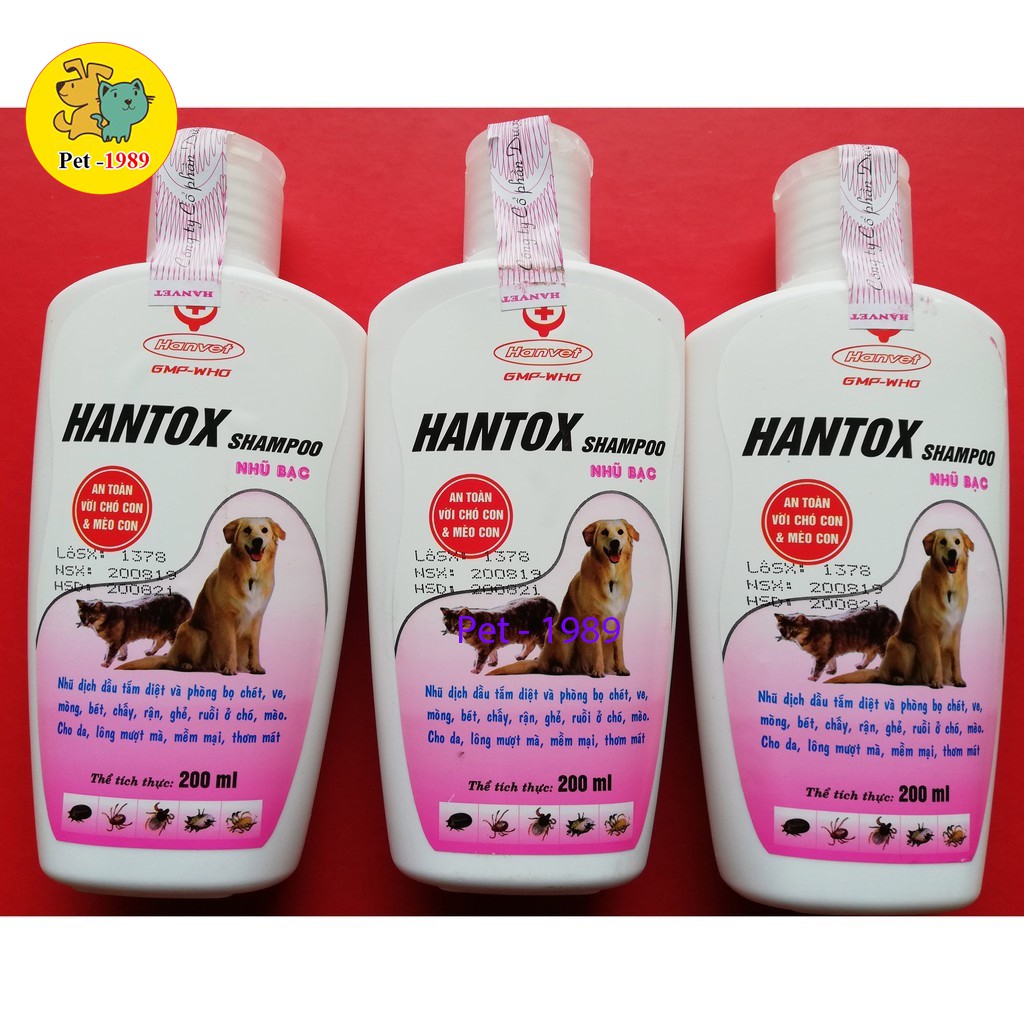 Sữa Tắm Ve Rận Bọ Chét Mượt Lông cho chó con và mèo con Hantox Shampoo Hồng Nhũ Bạc 200m Pet -1989