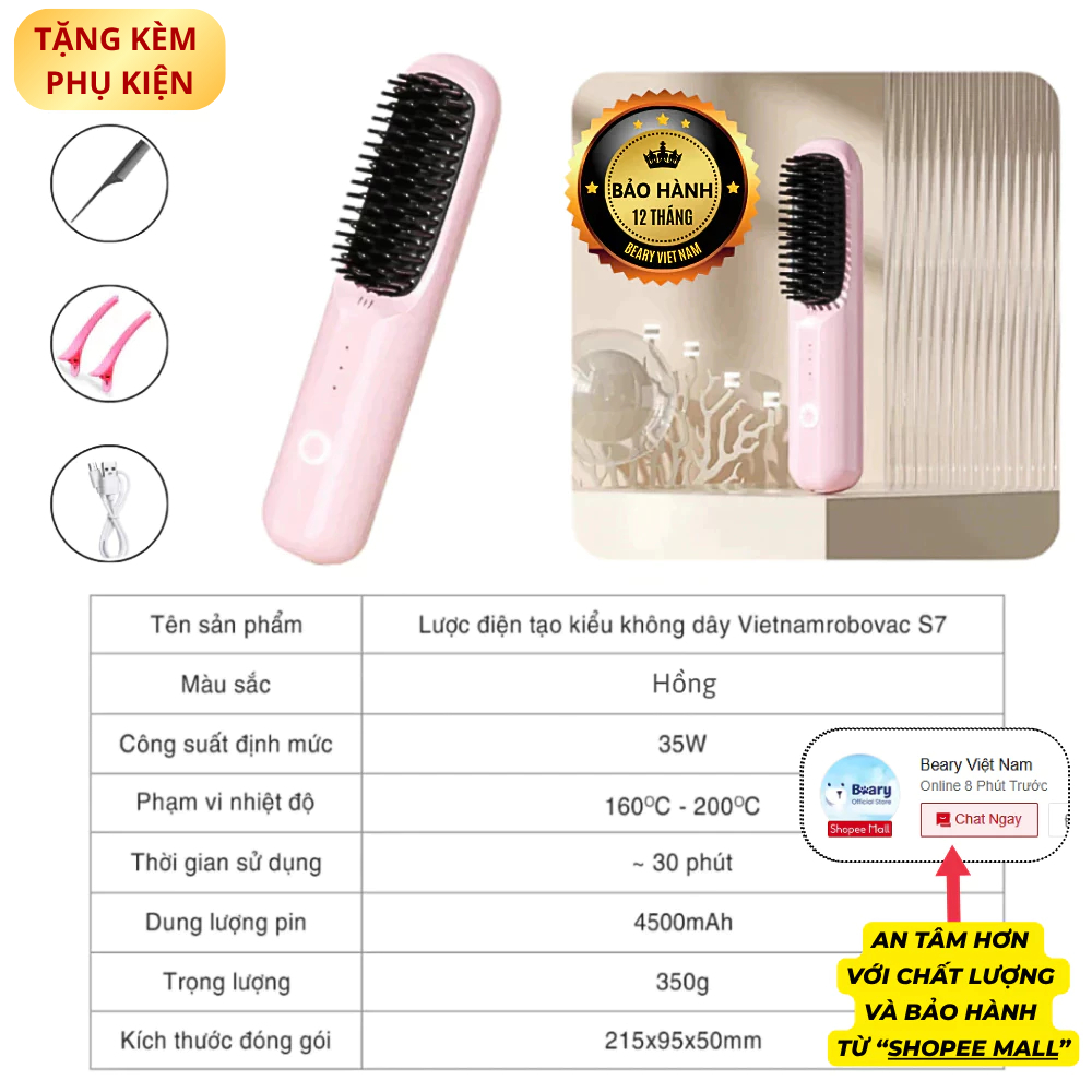 Lược Chải Tóc Điện Ion Âm METIS Lược Duỗi Thẳng, Bảo Vệ Tóc Cao Cấp Với 50 Triệu Ion Âm