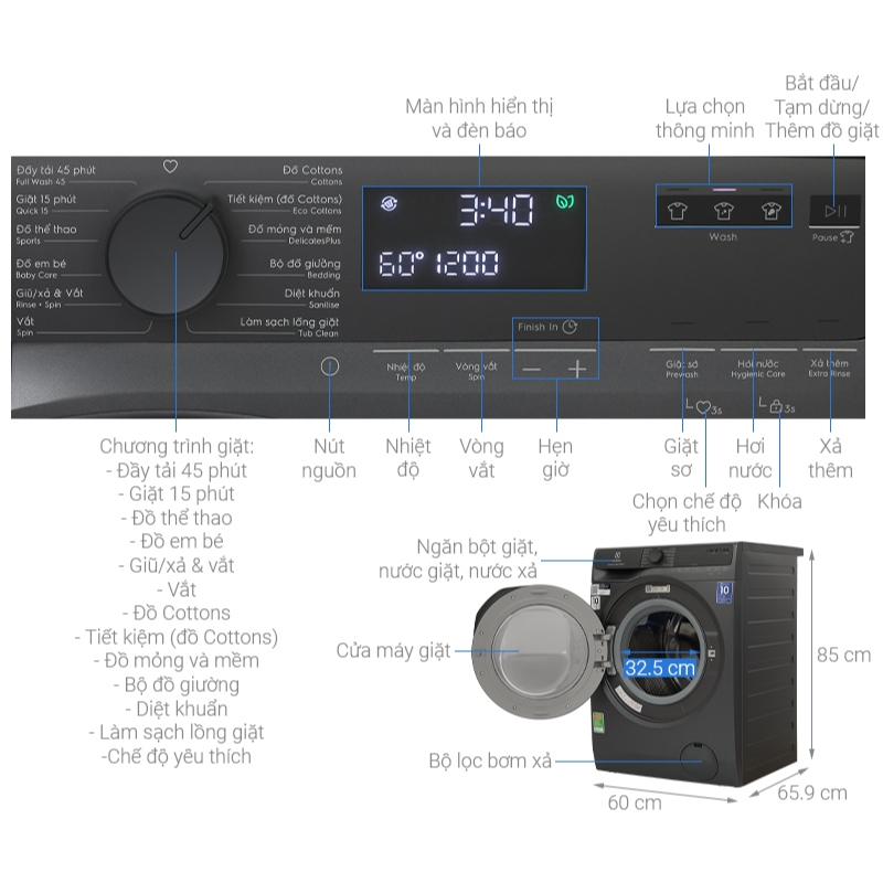 EWF1023P5SC | Máy giặt Electrolux Inverter 10kg EWF1023P5SC, Công nghệ UltraMix Giữ Màu Quần Áo, Hàng Thái Lan