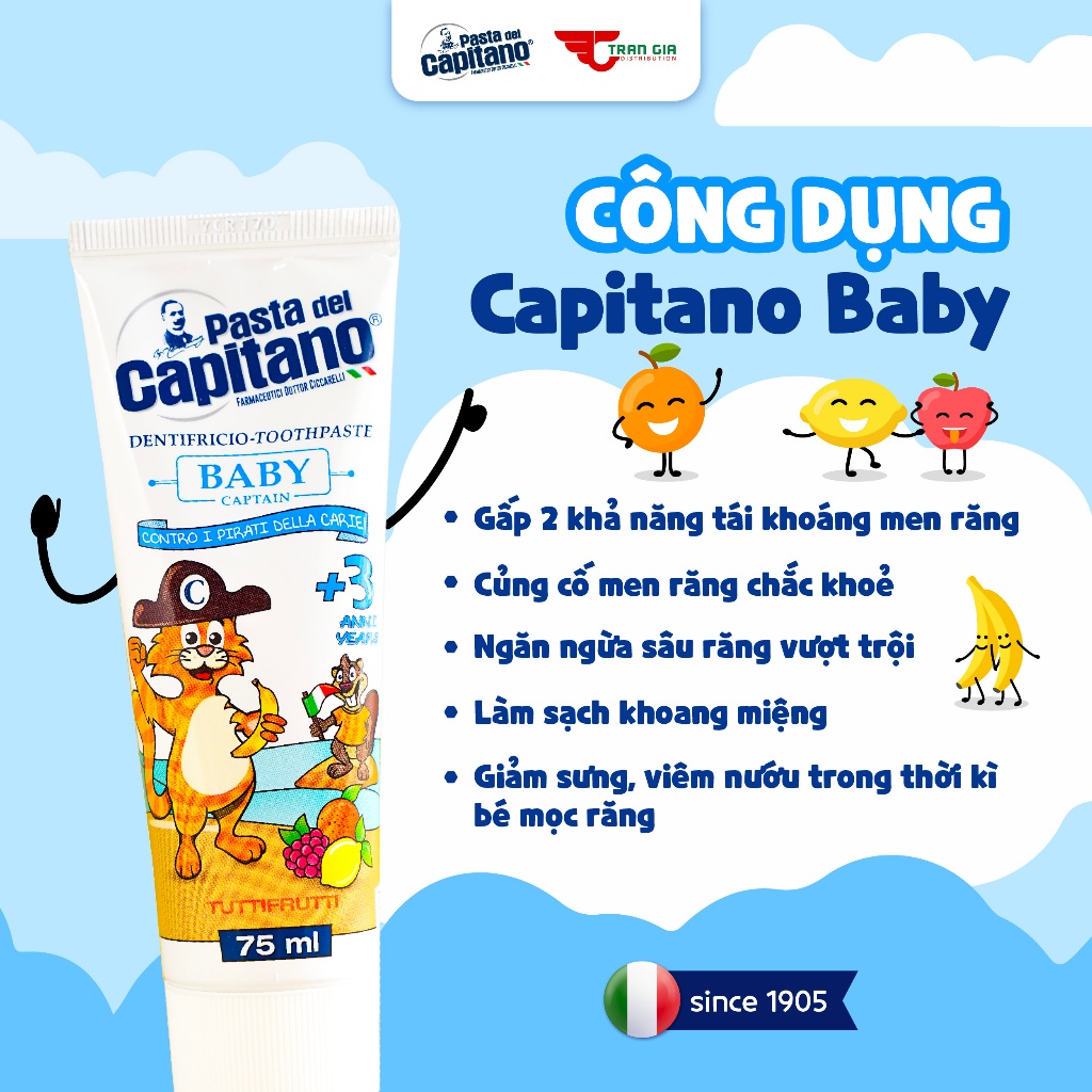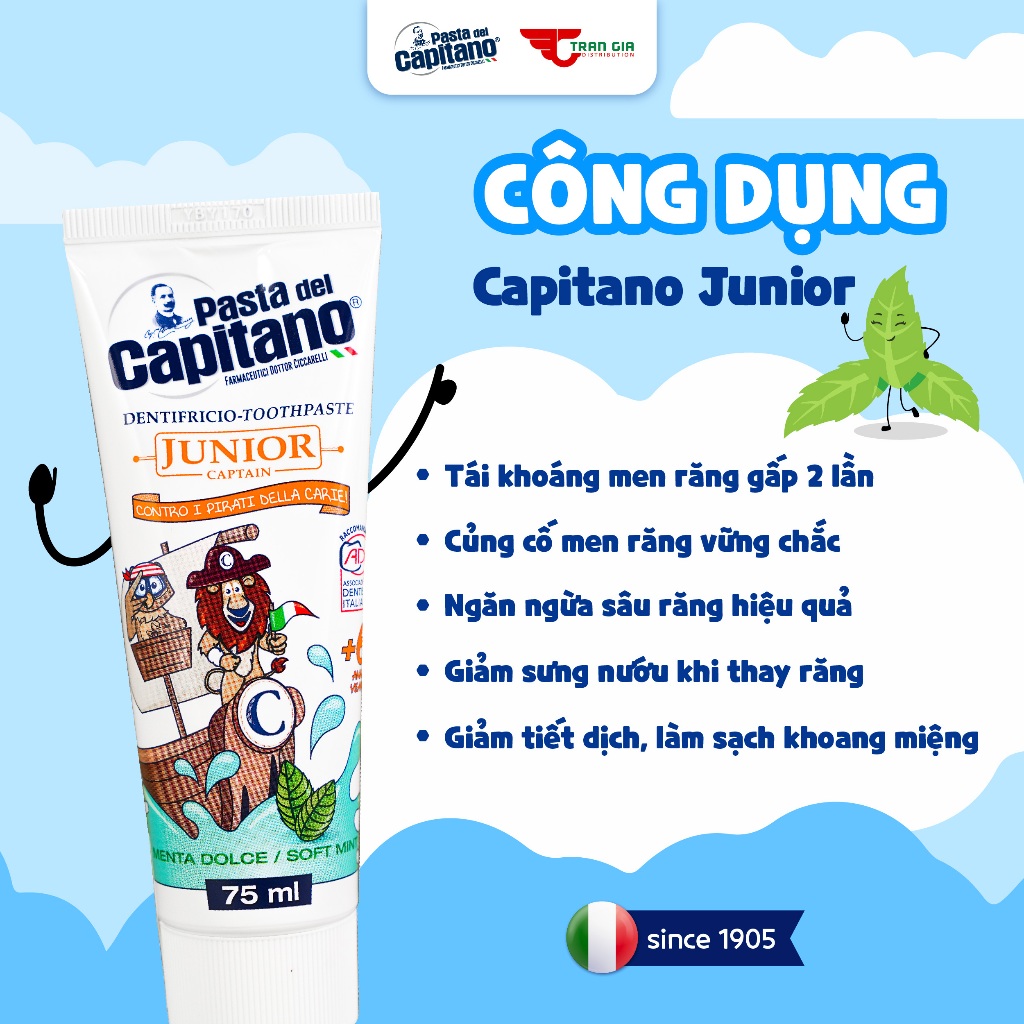 Kem Đánh Răng Trắng Răng Ngăn Ngừa Sâu Răng Capitano Italy Chống Hôi Miệng, Loại Bỏ Mảng Bám 75ml