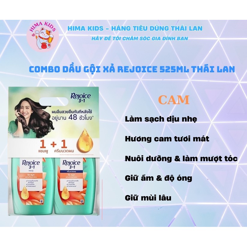 Combo dầu gội dầu xả REJOICE 525ml nội địa Thái Lan, dầu gội đầu làm sạch sâu thơm mát dễ chịu