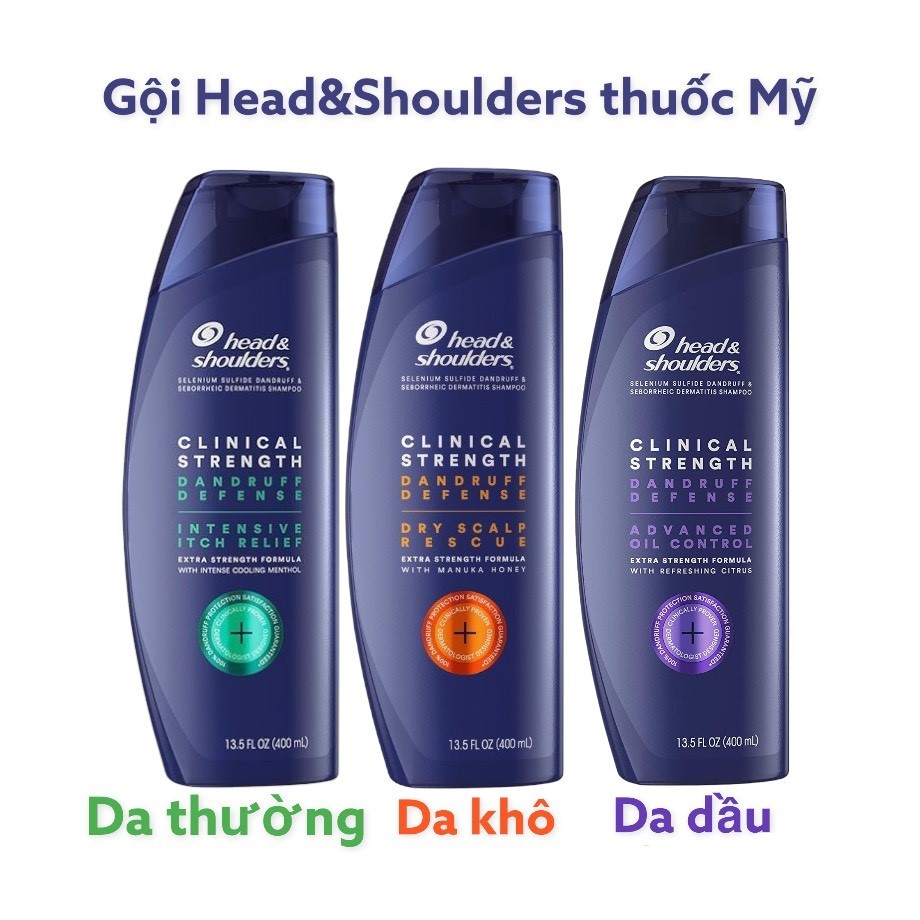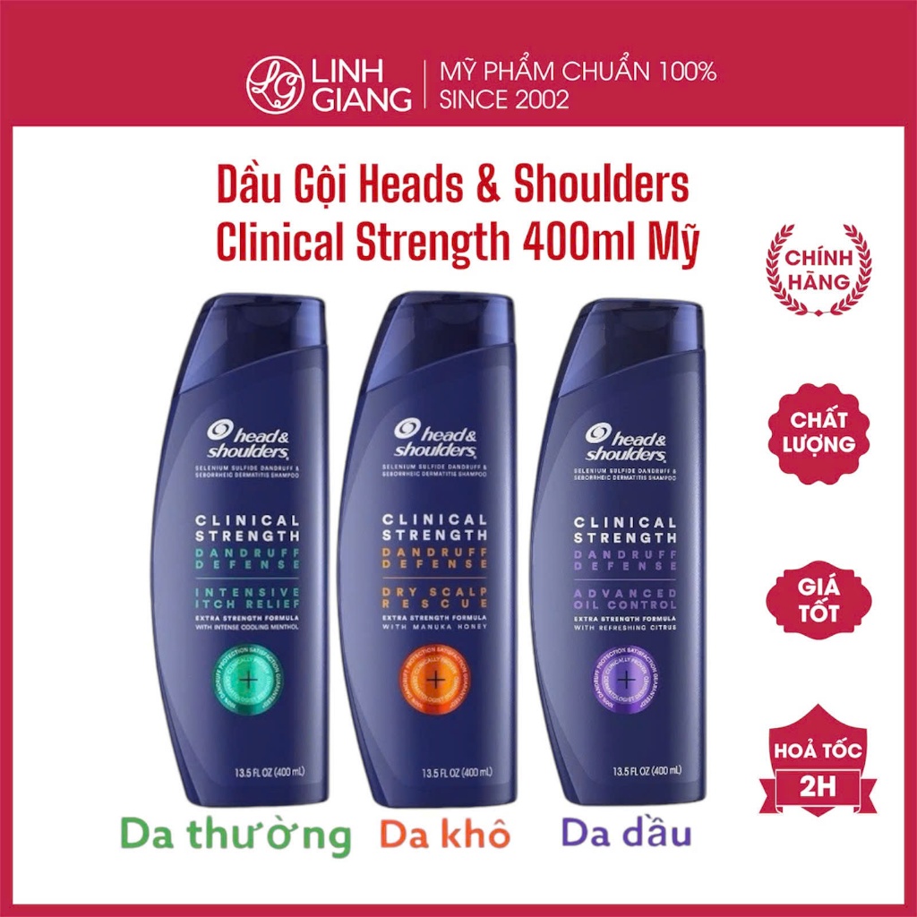 Dầu gội Heads & Shoulders Clinical Strength Mỹ 400ml chứa 1% Selenium Sulfide loại bỏ gàu ngứa Linh Giang chính hãng