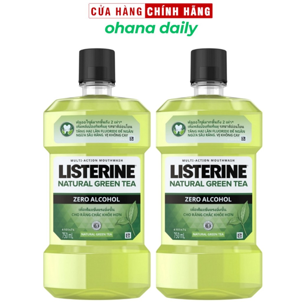 Bộ 2 Chai Nước Súc Miệng Listerine Trà Xanh Ngừa Sâu Răng, Hơi Thở Thơm Mát Listerine Green Tea Zero Alcohol 750ml/Chai