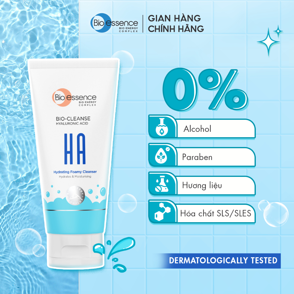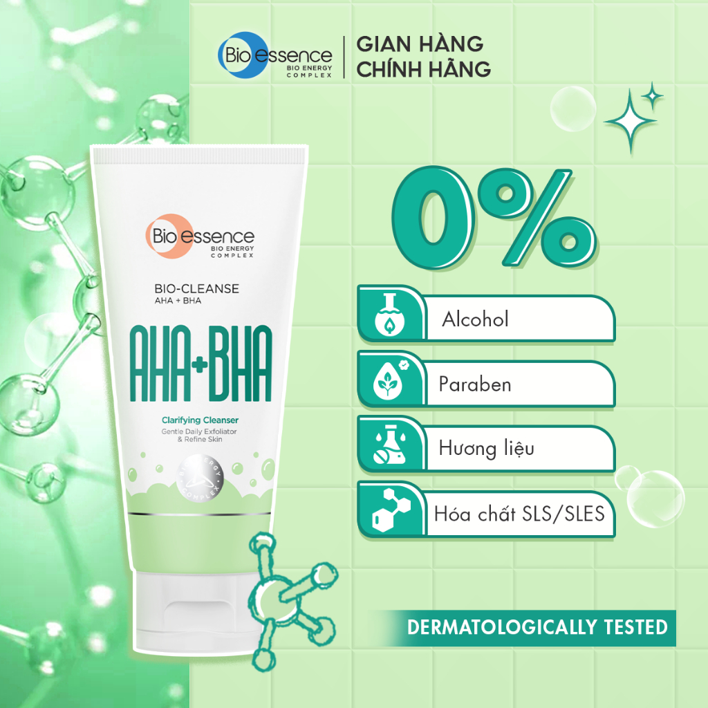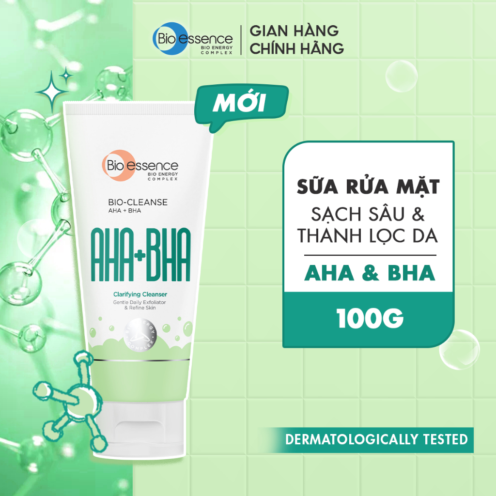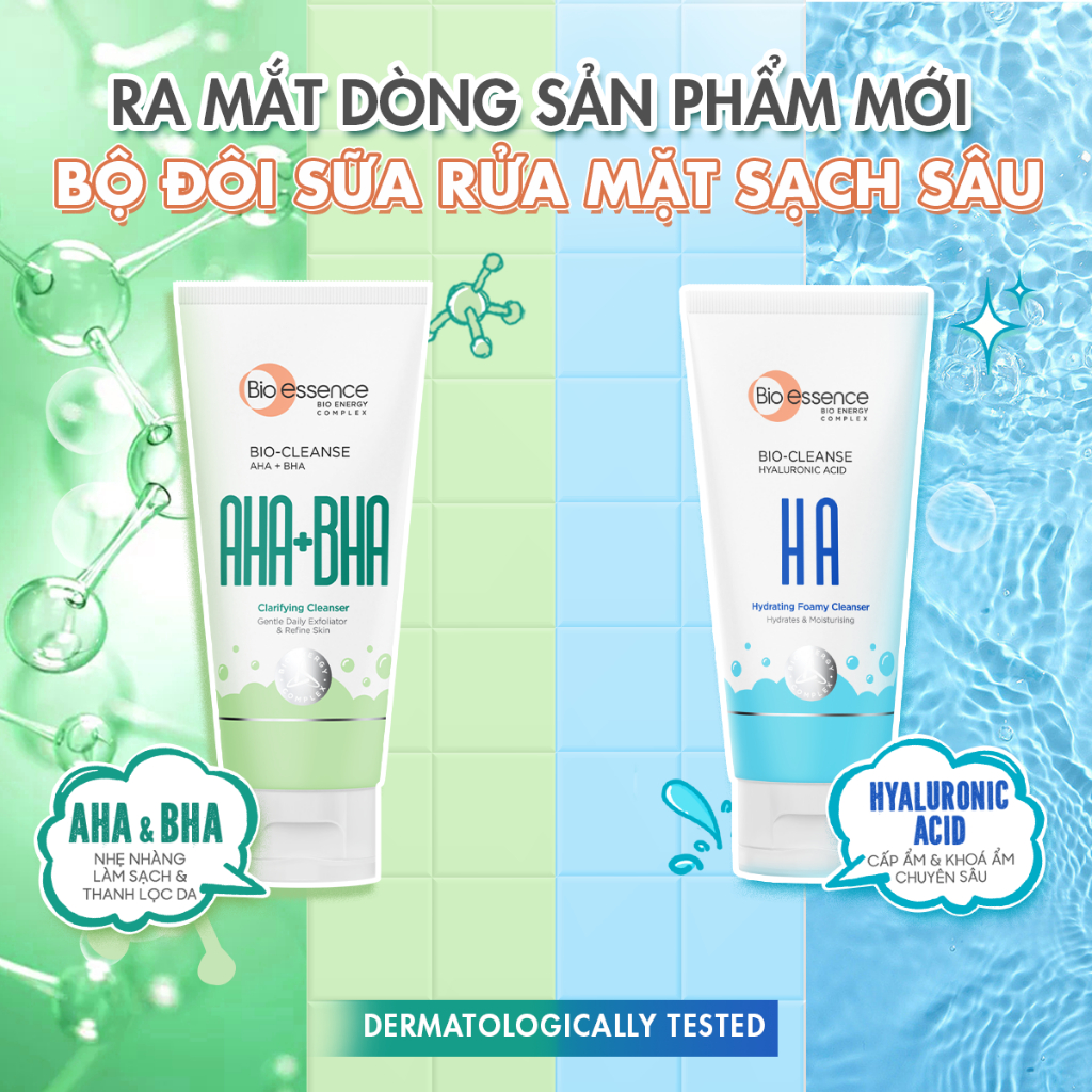 Sữa Rửa Mặt chứa AHA & BHA sạch sâu cho da dầu mụn/ HA cấp ẩm cho da khô Bio-essence 100g
