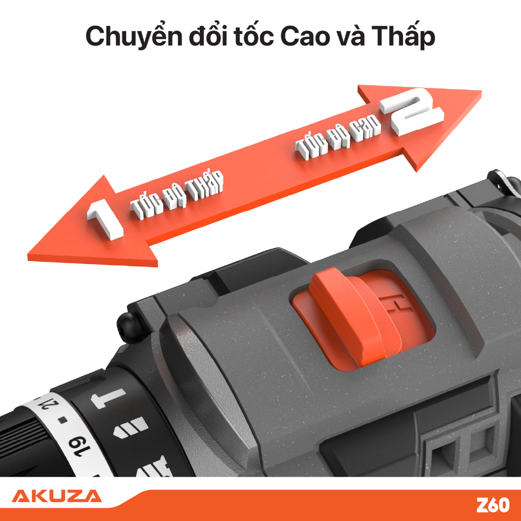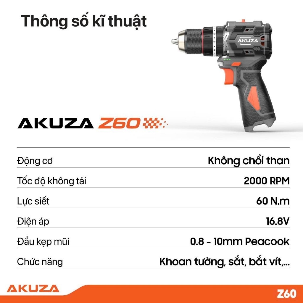 Máy Khoan pin Z60 Akuza16.8V, Không Chổi Than - Đầu Kẹp 10mm