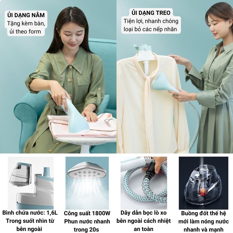 [Hỏa tốc HN] Bàn Là Hơi Nước Cây Đứng ZD758 Công Suất 1800W, Bàn ủi hơi nước cầm tay ủi mọi loại vải