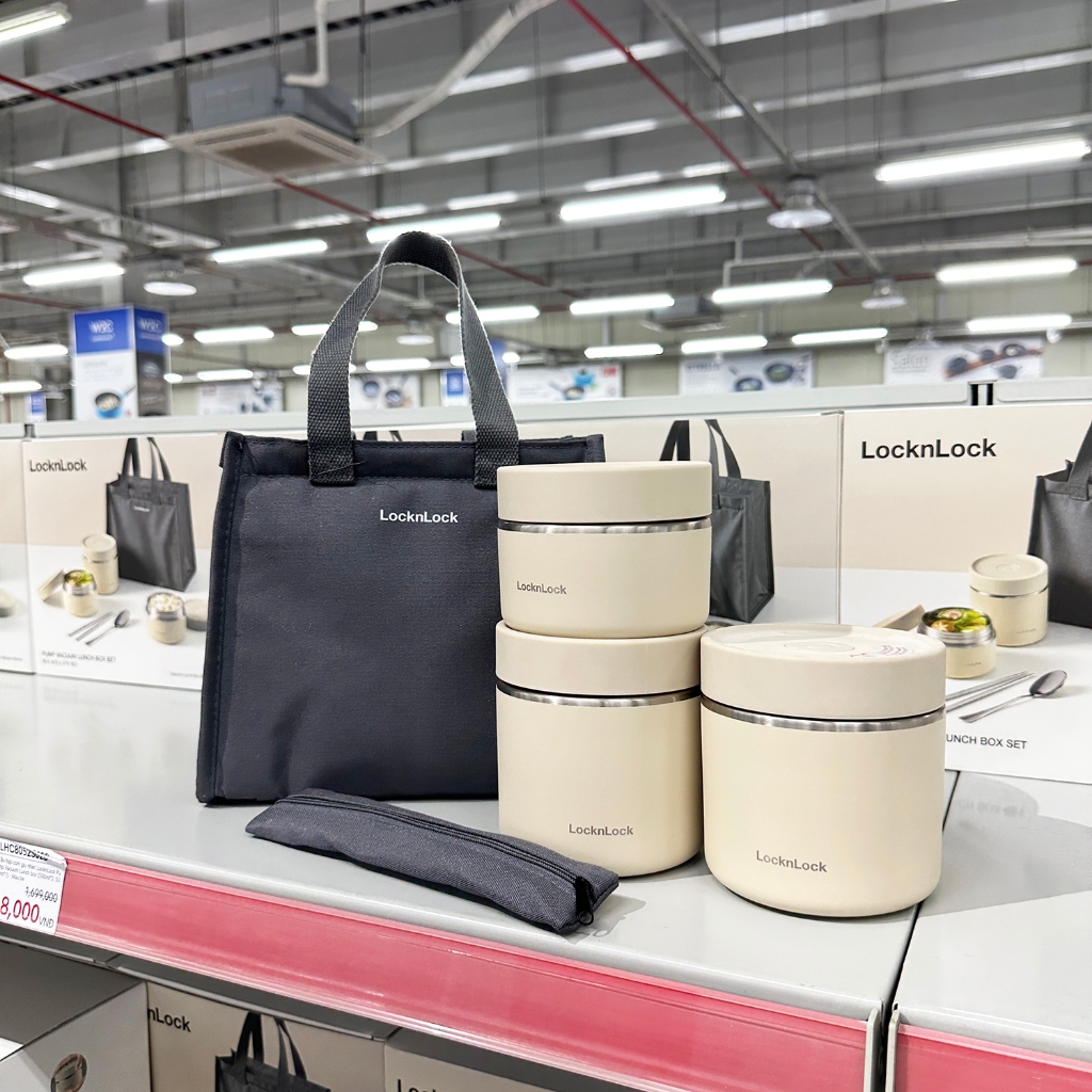 Bộ hộp cơm giữ nhiệt LocknLock inox 304 kèm bộ đũa thìa và túi giữ nhiệt LHC8052S02 - Ebearhome