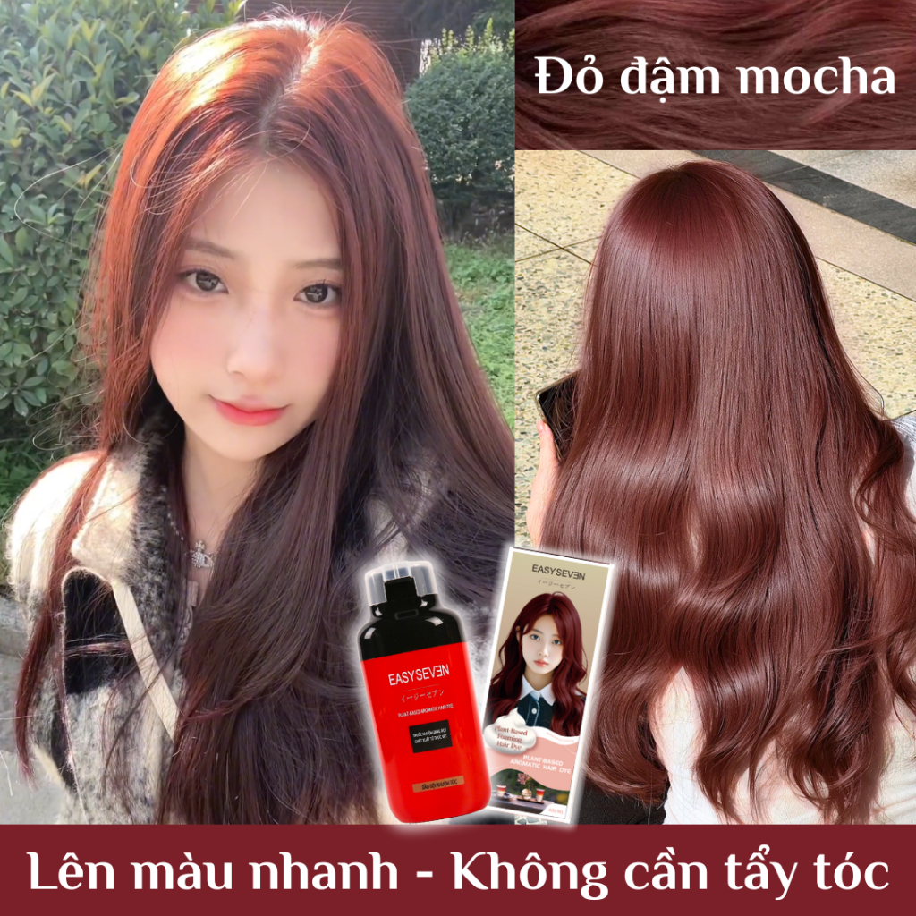 EASYSEVEN Dầu Gội Nhuộm Tóc Phủ Bạc ĐỎ MOCHA ĐẬM 400ml - Thảo Dược An Toàn, Phủ Màu Tự Nhiên