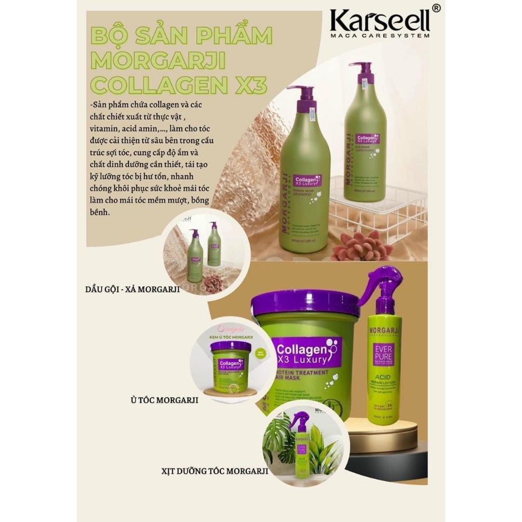 Dầu Gội Xả Collagen Morgarji 800ml*2 Kiềm Dầu Ngừa Gàu Phục Hồi Tóc Hư Tổn Siêu Mượt Chuẩn Spa