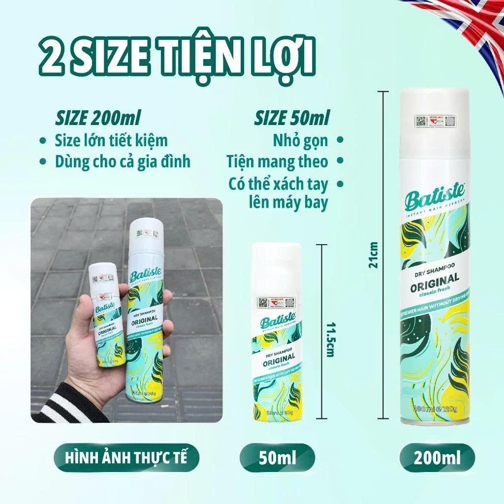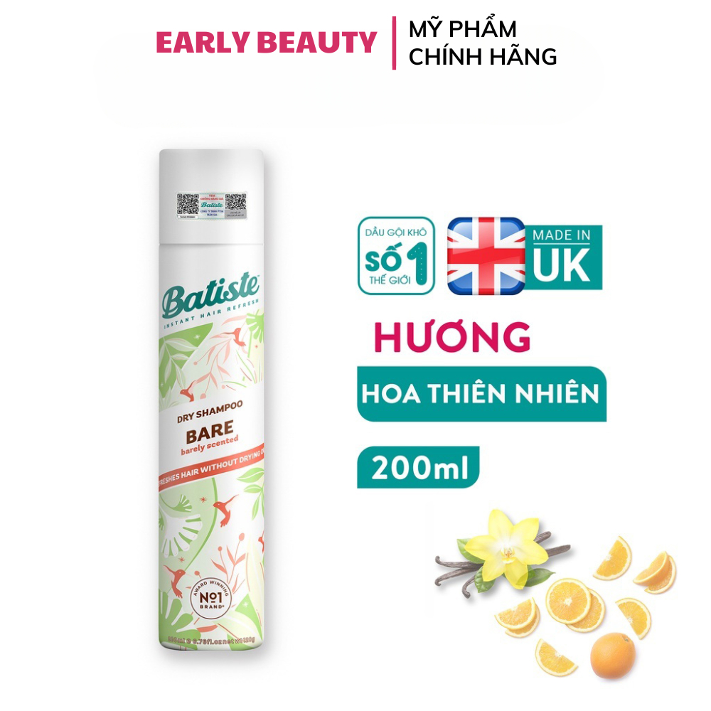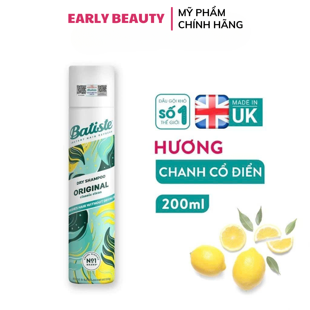 Dầu gội khô Batiste Dry Shampoo Dầu gội khô làm phồng tóc, sạch tóc, giúp tóc bồng bềnh nhanh chóng 200ml – Early Beauty