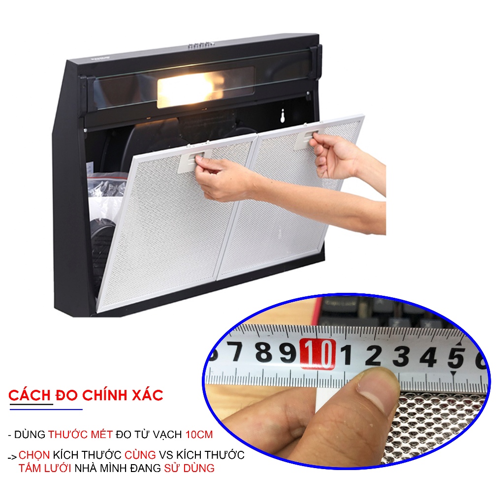 Lưới nhôm, lưới chắn mỡ, tấm lọc máy hút mùi Sunhouse, Canzy, Latino, Faster, Eurosun,....
