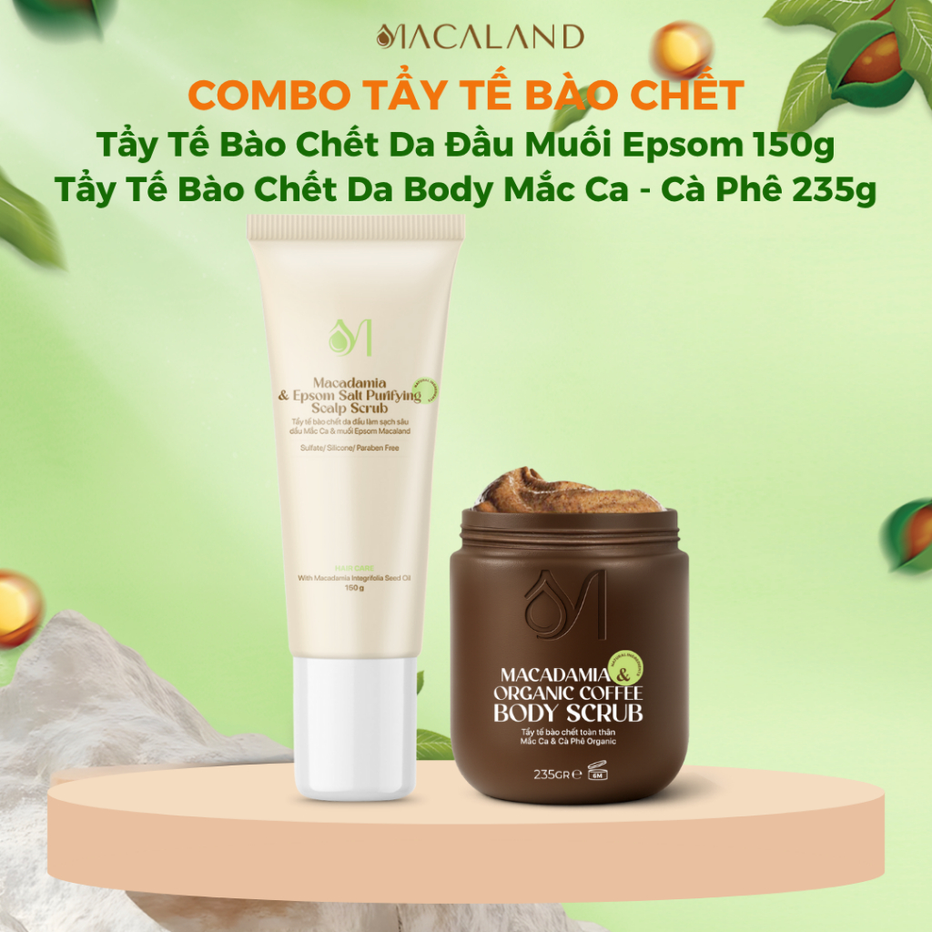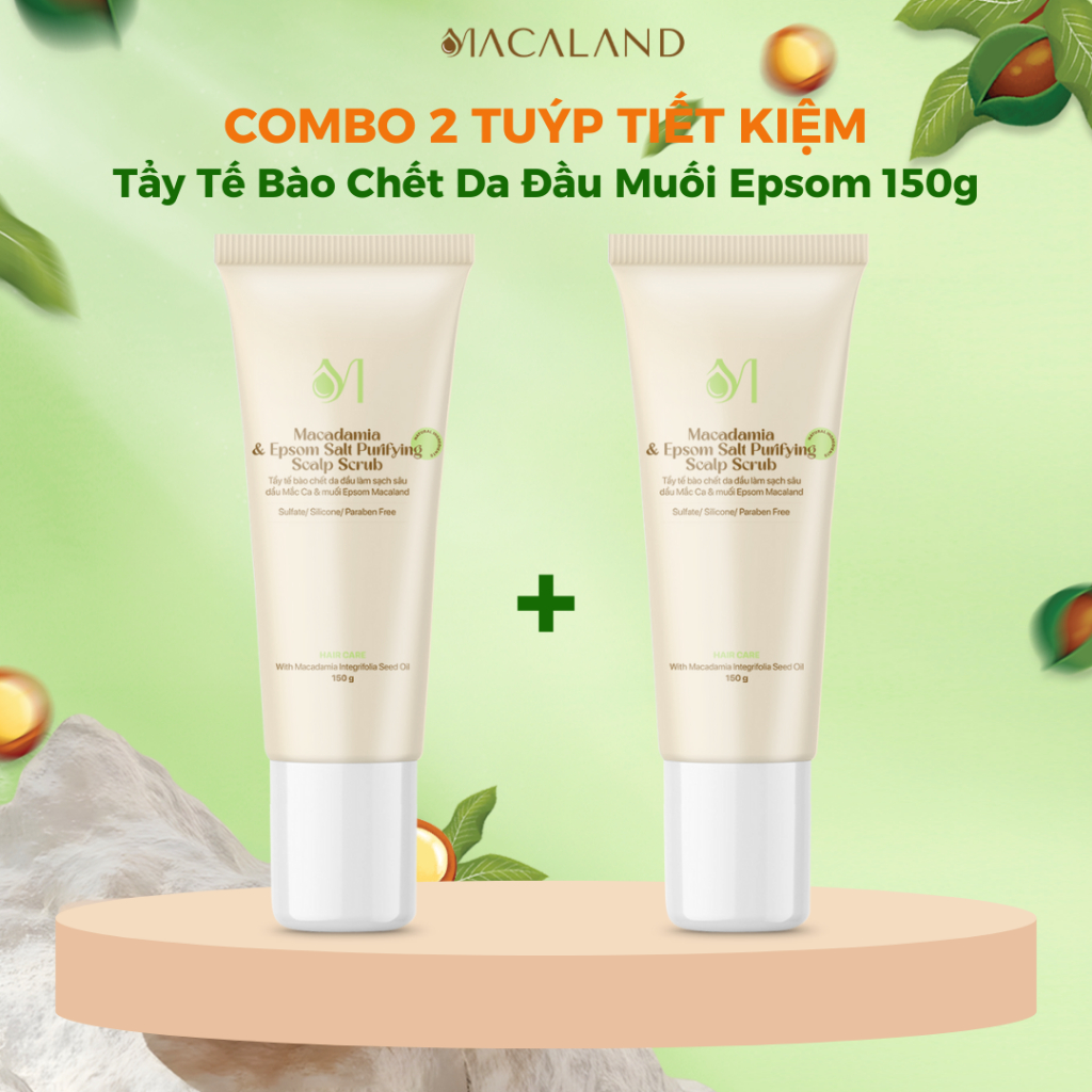 Tẩy Tế Bào Chết Da Đầu Mắc Ca & Muối Epsom 150g MACALAND Làm Sạch, Giúp Tóc Chắc Khỏe