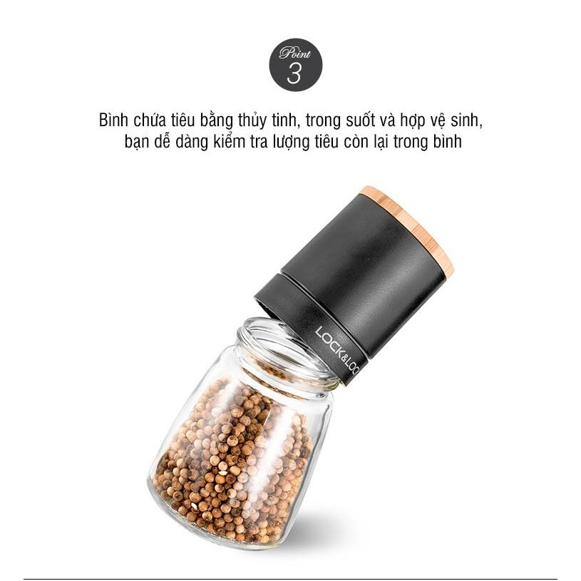 Lọ Xay Tiêu Cầm Tay Chất Liệu Thủy Tinh, Lưỡi Dao Bằng Sứ Lock&Lock CKO115 140ml - Màu Ngẫu Nhiên