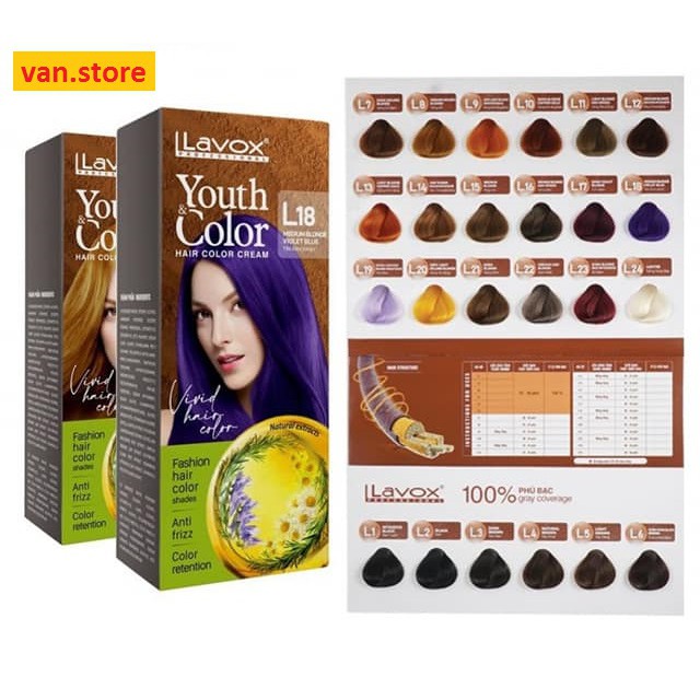 [Đủ Màu] KEM NHUỘM MÀU TÓC CAO CẤP LAVOX 60MLX2 💖Kèm Oxy + 1 Gói Kem Xả Giữ Màu Tóc + 1 Bao Tay💖